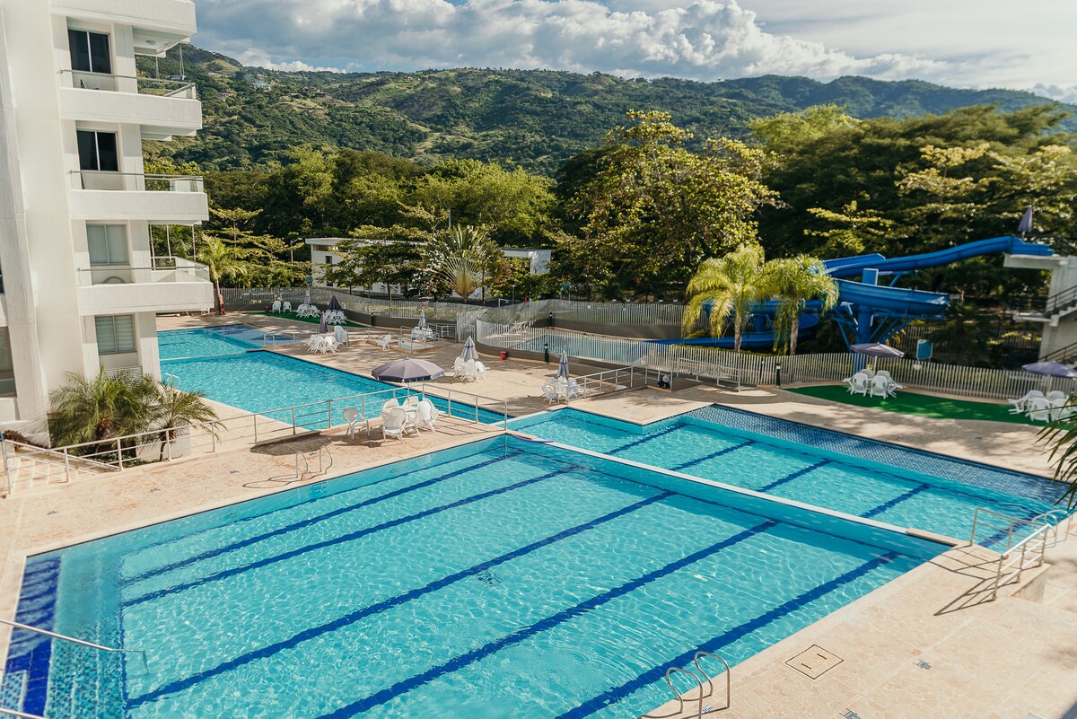 Apartasol in Citadela di Aqua, located in San Jeronimo, just 39 km from Medellin; A totally new apartment, with pool and mountain views, it has a 4K satellite TV, a fully equipped kitchen, air conditioning,etc. The Citadela Di aqua offers 6 waterfall pools, 6 solarium, water slide, Turkish bath, sauna, yoga, pools and water games for children, beach volleyball court, synthetic soccer field, basketball court, children's games, etc.