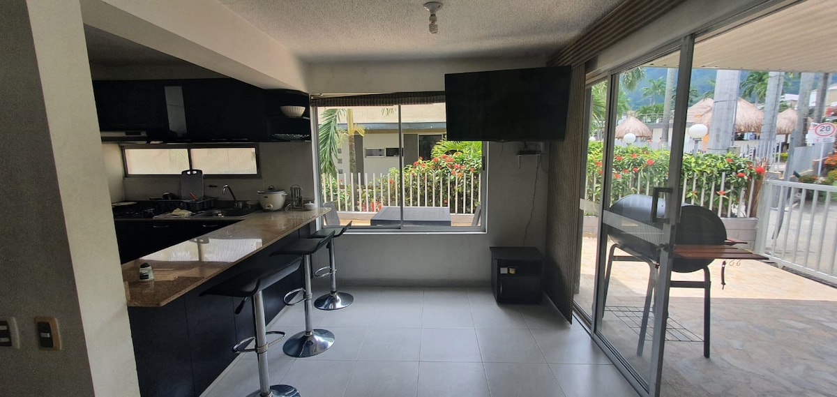 Escape to this newly remodeled apartment in Nautica resort villa, just 30 minutes from Medellin in the charming town of Sopetran. The villa offers fantastic amenities, including 5 pools, steam room, pool table, and nature walk, all within a 5-minute walk from the heart of downtown Sopetran. The apartment is fully equipped with AC and features 3 beds, including a cozy single loft, providing all the essentials for a relaxing and perfect getaway in a peaceful setting. Ideal for families or couples!