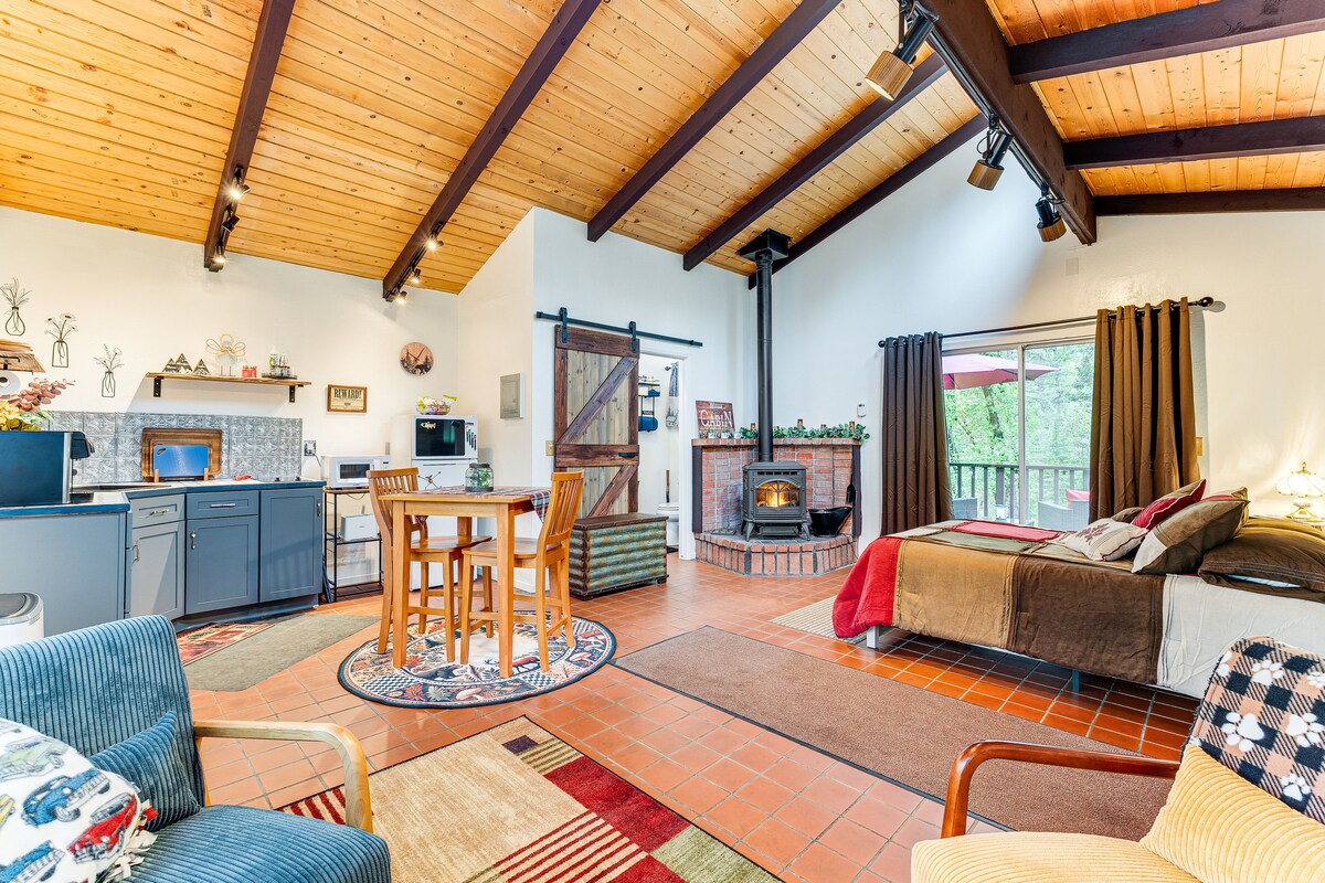 Why stay in a hotel room when you can escape to this cozy 500 sqft 2nd story loft. Enjoy this peaceful space with rustic charm but modern comfort. Studio space with King Bed, 65” Smart TV & full kitchenette. Perfect for couples or solo travelers. 1 of 7 unique stays at Homestead Cottages (see aerial) approx 22 MILES fr Yosemite South Entrance, minutes to Oakhurst, 15 miles to Bass Lake, less than a mile to the Fresno River recreation entrance and 2 miles to Ahwahnee Golf Course.