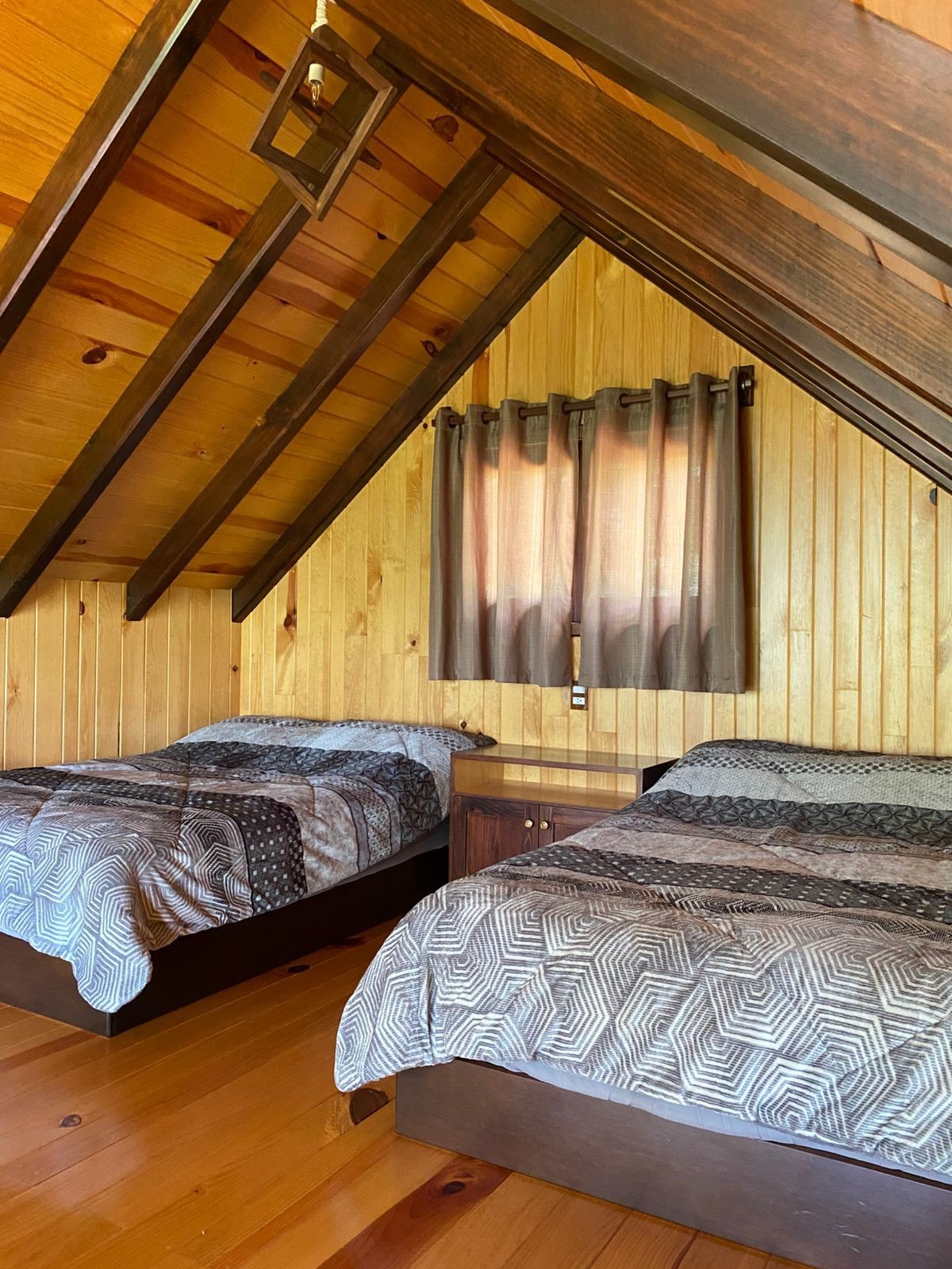 Cozy cabin with fireplace and terrace, your perfect retreat between mountains and trees. With Starlink Internet, stay connected for your remote work without sacrificing rest and comfort. Here, nature and technology come together to offer you a unique and inspiring experience. Enjoy panoramic views from anywhere in the cabin, plus it has a king-size bed and a large kitchen so you can prepare your food and enjoy it from the terrace.