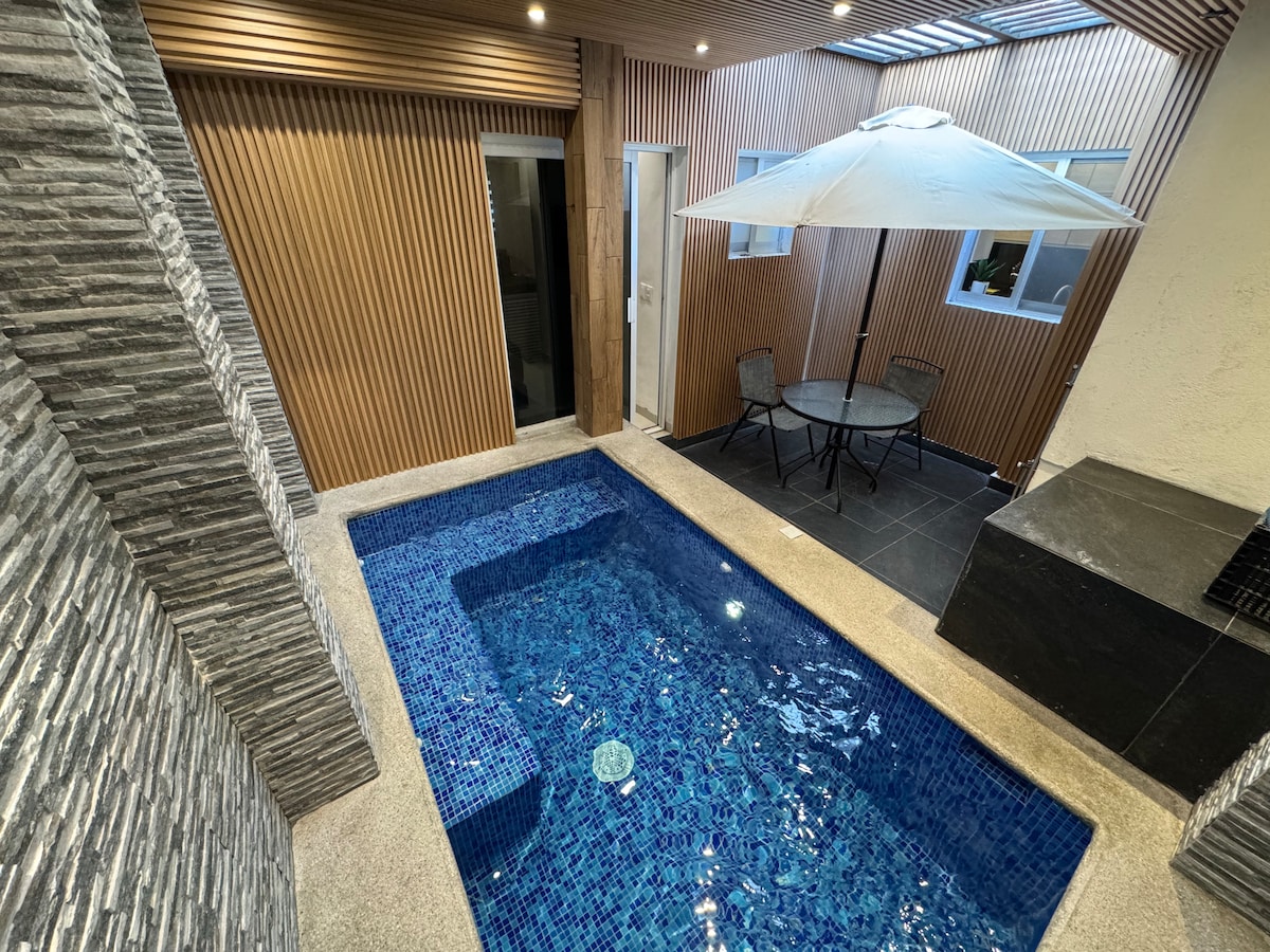 Relájate en este departamento vacacional único y tranquilo, diseñado para ofrecerte comodidad y descanso. Disfruta de una alberca privada templada dentro del alojamiento, de uso exclusivo, ideal para relajarte en cualquier momento. Cuenta con cocina totalmente equipada y espacios modernos pensados para tu confort. Además, como huésped tendrás acceso al club de playa del complejo, ubicado justo enfrente, a solo 2 minutos caminando.