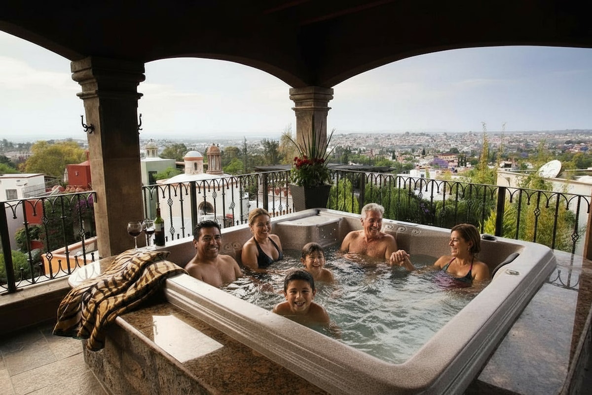 Relax in this stunning 3-bedroom villa with breathtaking views, a rooftop hot tub, cozy fire pit, yoga mats, Weber barbeque, and lush gardens. 2 of 3 spacious bedrooms feature ensuite baths, 4 bathrooms in total, plus a sunny dining room and chef’s kitchen. Enjoy fast Wi-Fi, daily maid service, luxury linens, and smart TVs—just steps from downtown San Miguel de Allende. Perfect for families and friends seeking comfort, style, and relaxation!