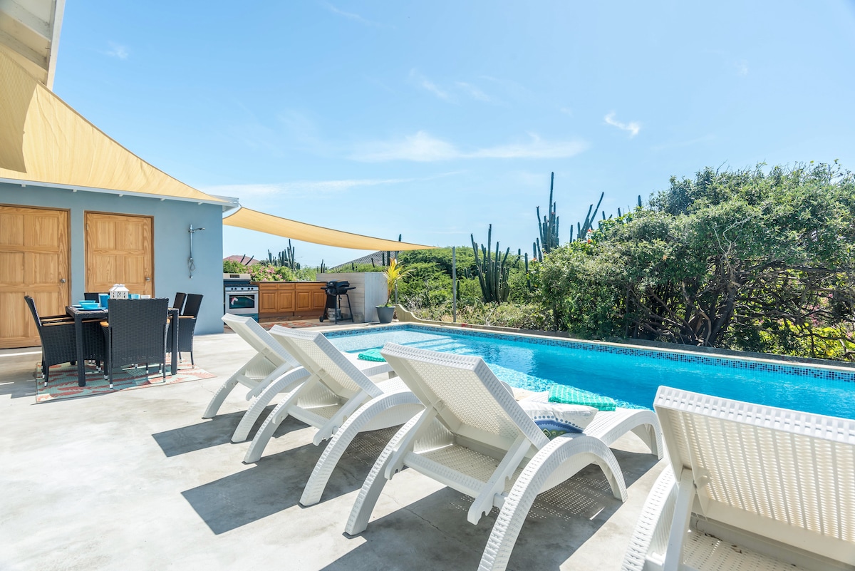 This charming villa in Sero Colorado just a 10-minute walk/2-minute drive from Baby Beach. The area is revitalizing, providing a quiet retreat away from crowds. - 3 bedrooms and 3 en-suite bathrooms - Accommodates up to 8 guests - Fully equipped kitchen - Large 5x10 meter pool - Air conditioning in all rooms - Washer and dryer - Spacious enclosed yard with gazebo Restaurants and grocery stores are within a 15-minute drive, making it perfect for families and groups seeking a memorable getaway.