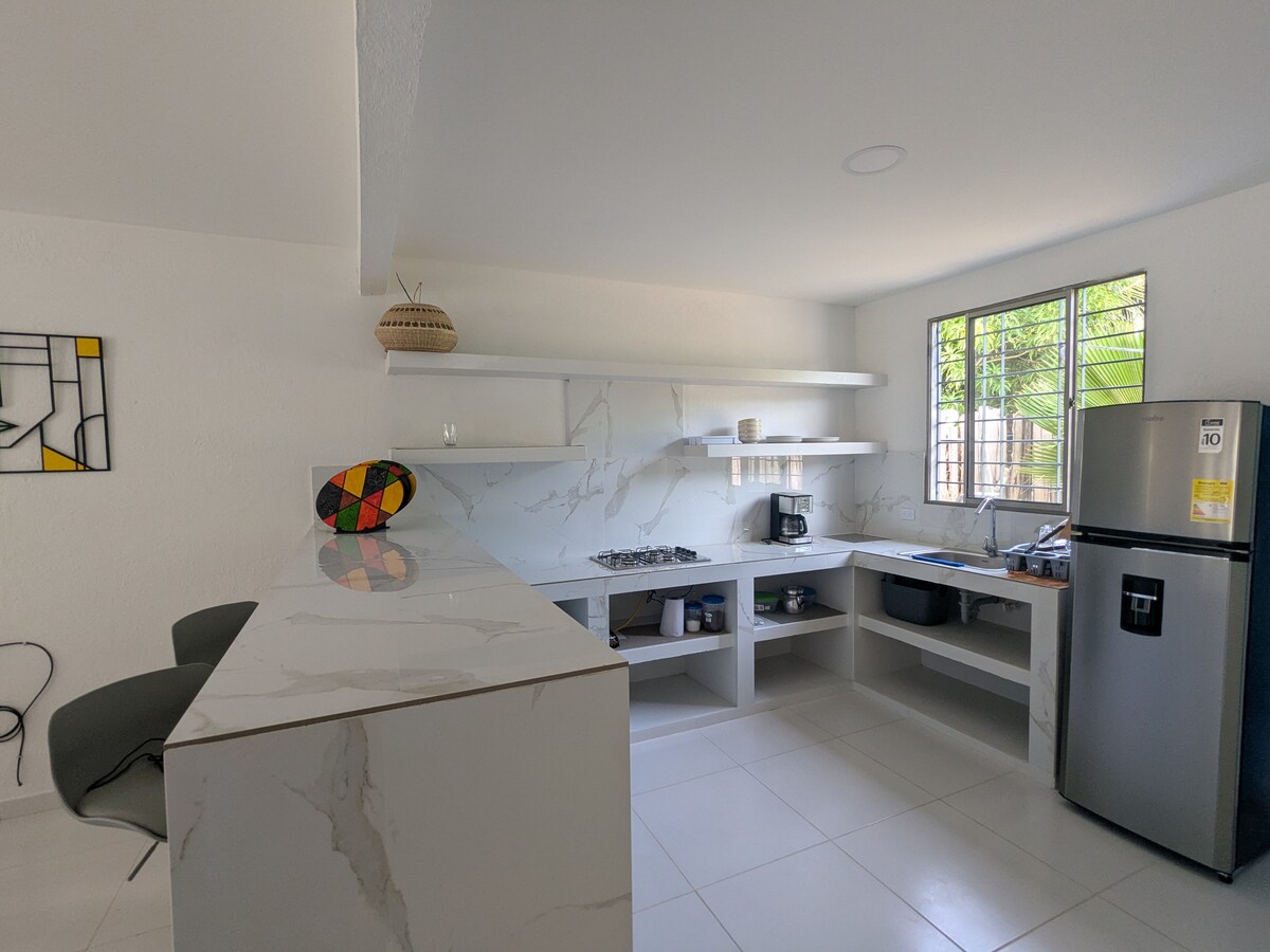 Exclusive beachfront studio apartment, where the beach literally comes to your door. The Caribbean Sea awaits you 40 steps from your bed, in the quietest and most paradisiacal area of Rincón del Mar. Enjoy a spacious, private, clean and comfortable space. We offer you information to make the most of your stay: transportation, parking, tours and activities. Live the unique experience of waking up in your little house in front of the sea, next to delicious restaurants and the best spot for an epic sunset!