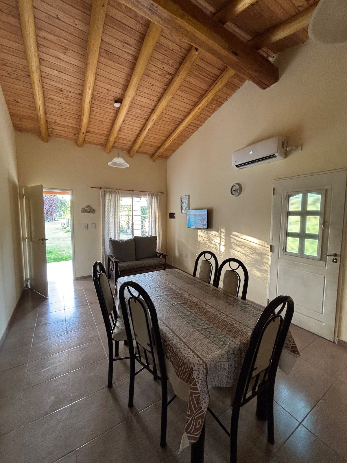 Viví la magia de Villa 25 de Mayo, un pueblito histórico y pintoresco entre alamedas centenarias, montañas y espejos de agua que reflejan la calma del entorno. Nuestra casita Amaru te espera con vistas abiertas, jardín con flora autóctona y piscina estacional. Fue diseñada con amor para que descanses, respires aire puro y disfrutes de la armonía del paisaje. Cerca del río, bodegas y rutas del vino, es un rincón único de Mendoza donde naturaleza, historia y confort se encuentran.