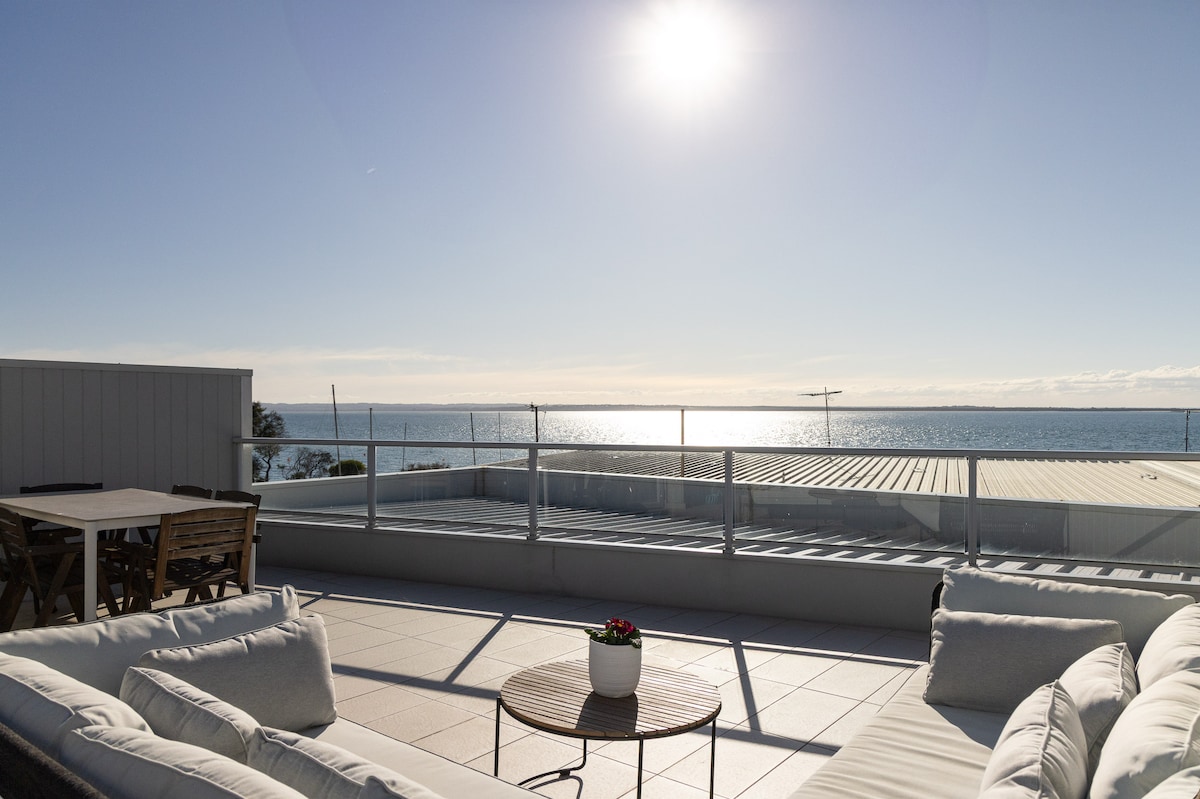 Wake up to 180° ocean & city views in our stylish coastal loft! With two queen bedrooms, open-plan living, a modern kitchen, and a sunrise-to-sunset viewing deck, enjoy breathtaking scenery, sea breezes, and unforgettable coastal moments. Watch the sunrise over the ocean, sip wine at sunset, and relax in comfort — you won’t want to leave!