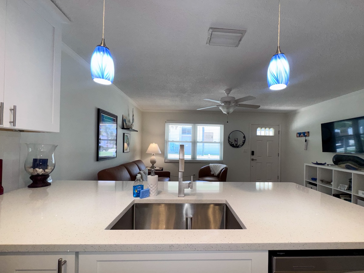 *FULLY REMODELED!!! *TOTALLY SMOKE- FREE *WALKABLE BEACH COMMUNITY *PERFECT FOR COUPLES Come enjoy our quiet 1 bedroom condo with a cozy living room, full kitchen and very close beach access!! All beach items provided! Short stride to the property’s private pool, and a public Trolley that runs daily between Clearwater & St Pete Beaches. Easy stroll to many nearby restaurants, bars & shops. Includes wifi, stream Tv service & private stacked laundry. A very peaceful spot for a beach getaway!