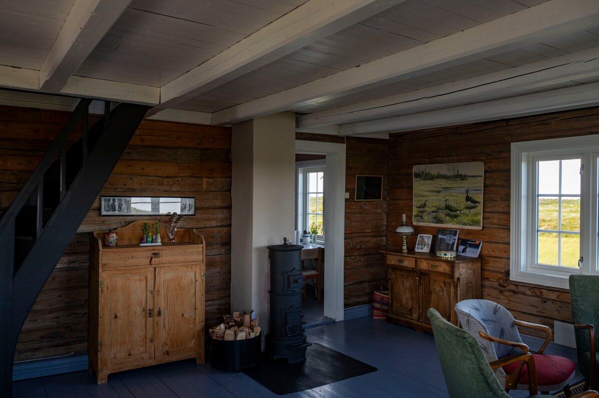 The house is a 100 years old timber house with good ceiling height. Good space, both and outdoor. Visiting farm as the closest neighbor. Nice base for excursions on southern Helgeland. The house is completely renovated on the outside and can be used throughout the year.