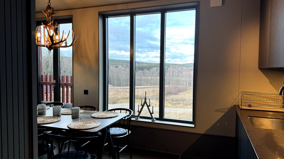 Newly built villa in a scenic area close to water and nature. The kitchen is modern in design and fully equipped. The house has a wooden deck of 110 m3 that stretches around the house. A gas grill is available. Large associated parking area with charging post for electric vehicles on the premises. The villa is located 4 km from Storsjöns pearl, Årsunda Strandbad. 30 minutes' drive from Kungsberget Ski resort and 20 minutes from popular Högbo Bruk. Currently, there is only access to the lake in winter.