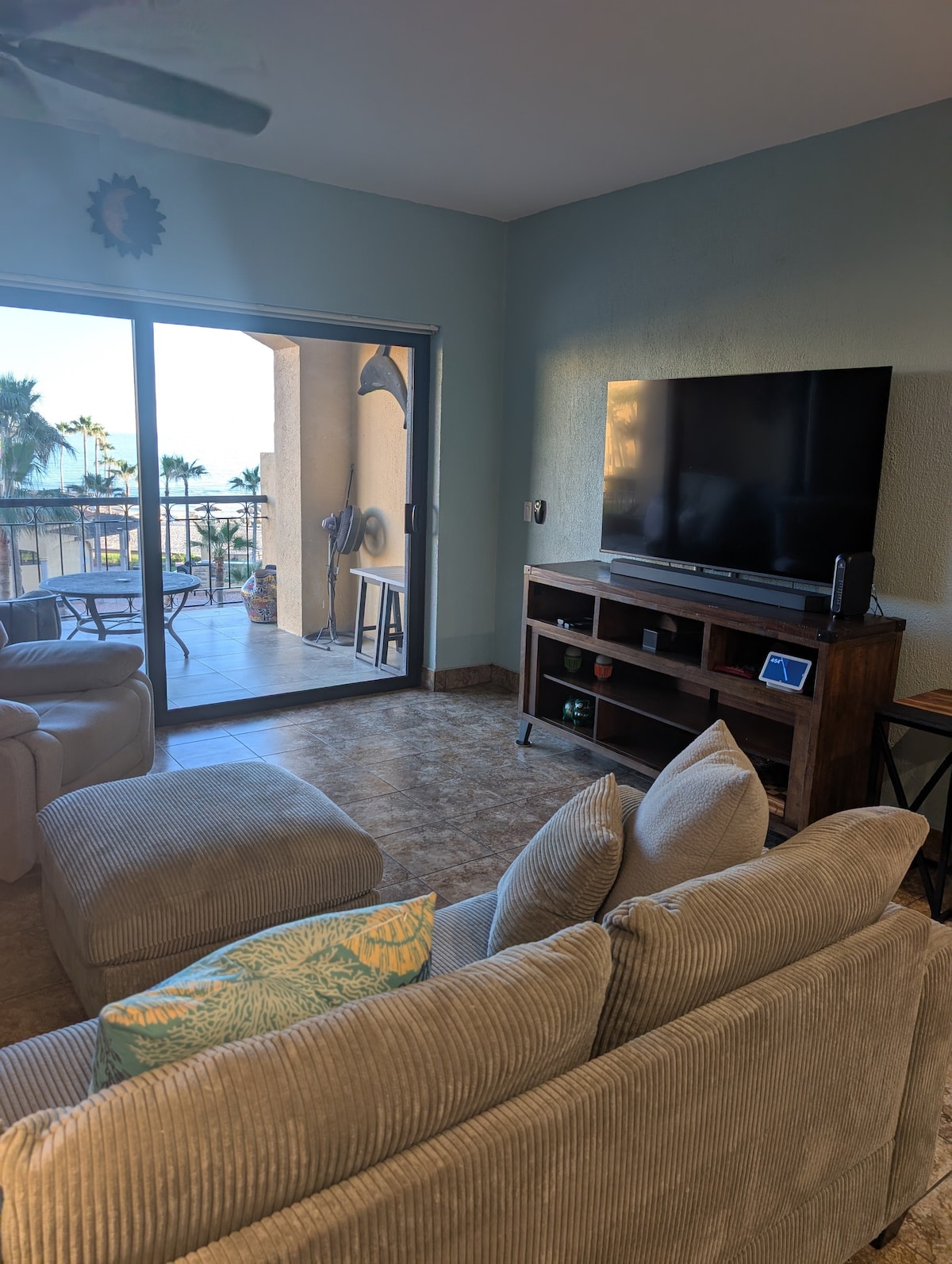 Feel right at home in our spacious, newly completed end unit condo with a 5-6 minute walk to the beach! The complex is serene and quiet, allowing for your much needed comfort and relaxation. You can relax in the condo, enjoy either of the two pools or rooftop patio with the best view of the Sea of Cortez in all of Las Conchas. Since our unit is in the first, most forward facing building, the view from the huge patio is one of the best views in the entire complex and it's very private.