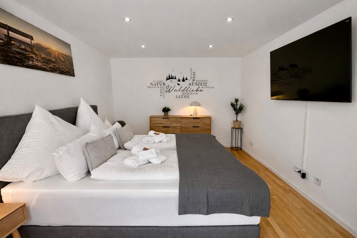 Our luxury apartment "Rebenmeer" is located on the outskirts of Hainfeld, within walking distance of the Koch wine pavilion and Scherr winery. The vineyards start right behind the house. An ideal location for hiking on foot and stopping in the huts in the Palatinate Forest. The occupancy is designed for 2 adults and 2 children or 3 adults. Children and toddlers are welcome. 😊Shopping is 3 km away. 4 restaurants in the village and child-friendly. Outdoor pool very close!