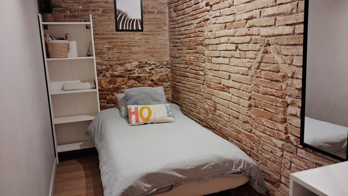 I rent a sunny single room overlooking a park. It's an apartment shared with me and another double room. Pros: Clean and quiet apartment, very well connected: metro L9. L5 and L1; Tram and buses. A 5-minute walk to Camp Nou. The room has a desk, shelves, a closet and a new bed. There is an AC in the dining room that serves all the rooms. Cons: The only possible one is that it is a 4th floor without an elevator. Welcome and ask as many questions as you like.