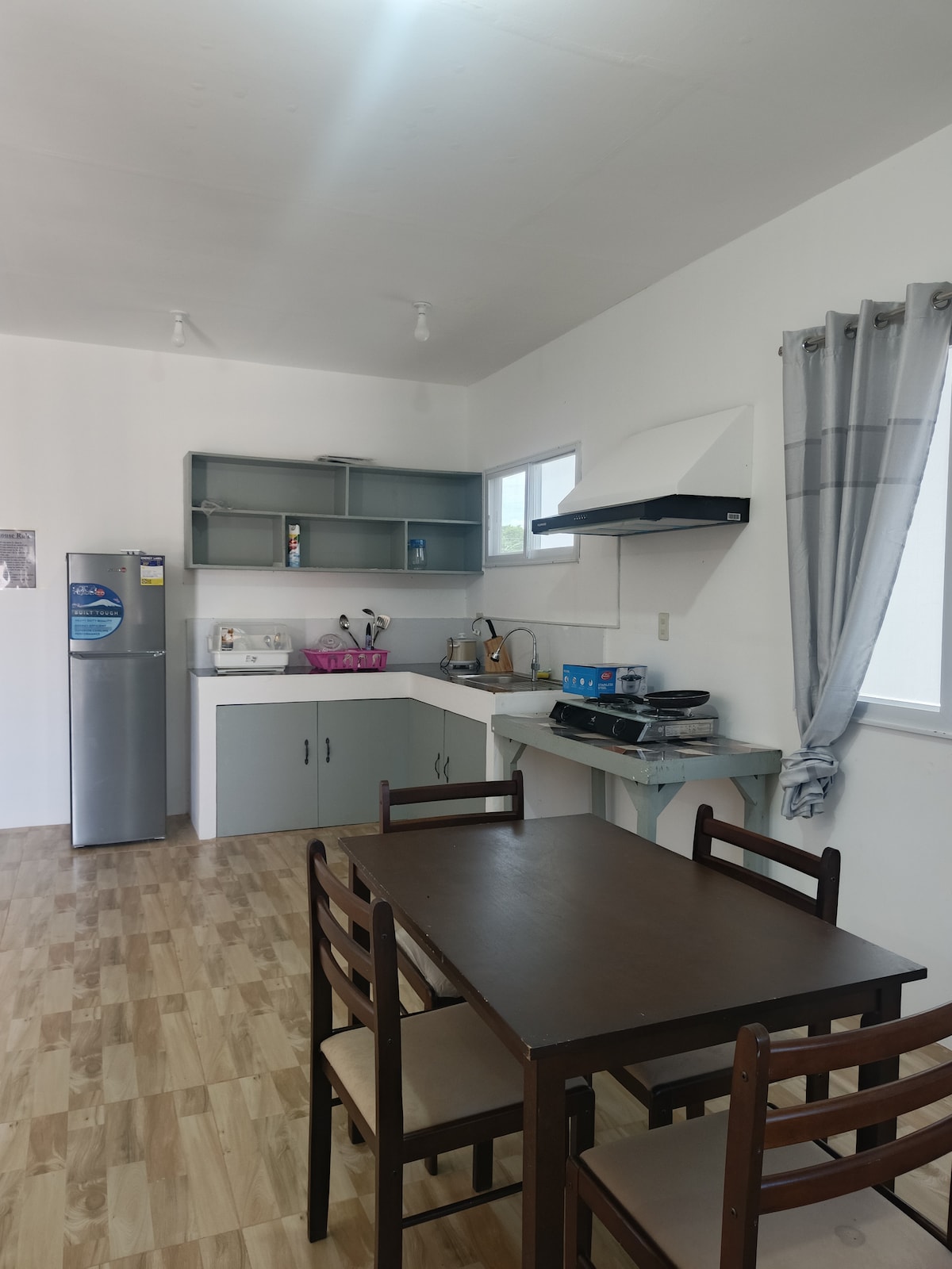 Feel the serenity fully furnished Filipino home -spacious and perfect for big groups of 8–10. Located in quiet Pooc Santa Fe, right across the airport & just 5–7 mins from the beach, dining, and nightlife. (Note: Not beachfront, but only 10m from the main road for easy access.) Inclusions: - 3 bedrooms with aircon - 40" TV Netflix - Full kitchen with 2-burner gas stove - Refrigerator, rice cooker, and heater - Complete dining and cookware set - 2 toilets with shower rooms - Free open parking