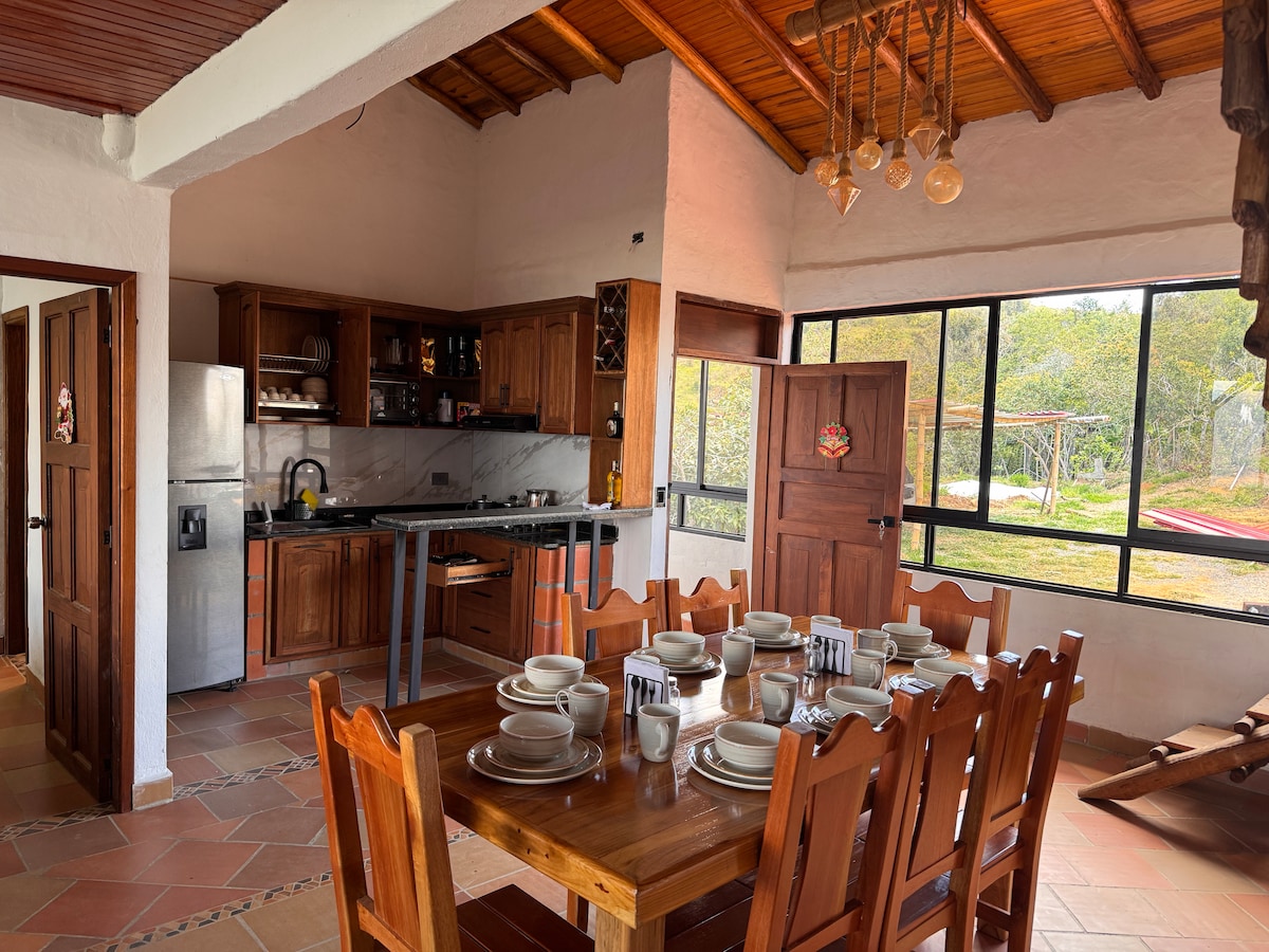 Los Zipas Country Estate Furnished country house with excellent distribution of spaces, 5 bedrooms, full kitchen, 2 social bathrooms, 2 private bathrooms, very large living and dining room, fireplace, 59-inch TV and directv, balcony, terrace, covered parking. Surrounded by gardens, green areas, nature, surrounded by mountains, excellent view on the sides of mountains, forests and the village. Possibility of additional Turkish bath and BBQ services.