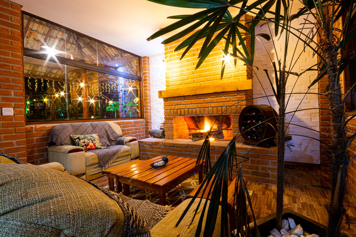 Chalé com hidro dupla, lareira e café da manhã
