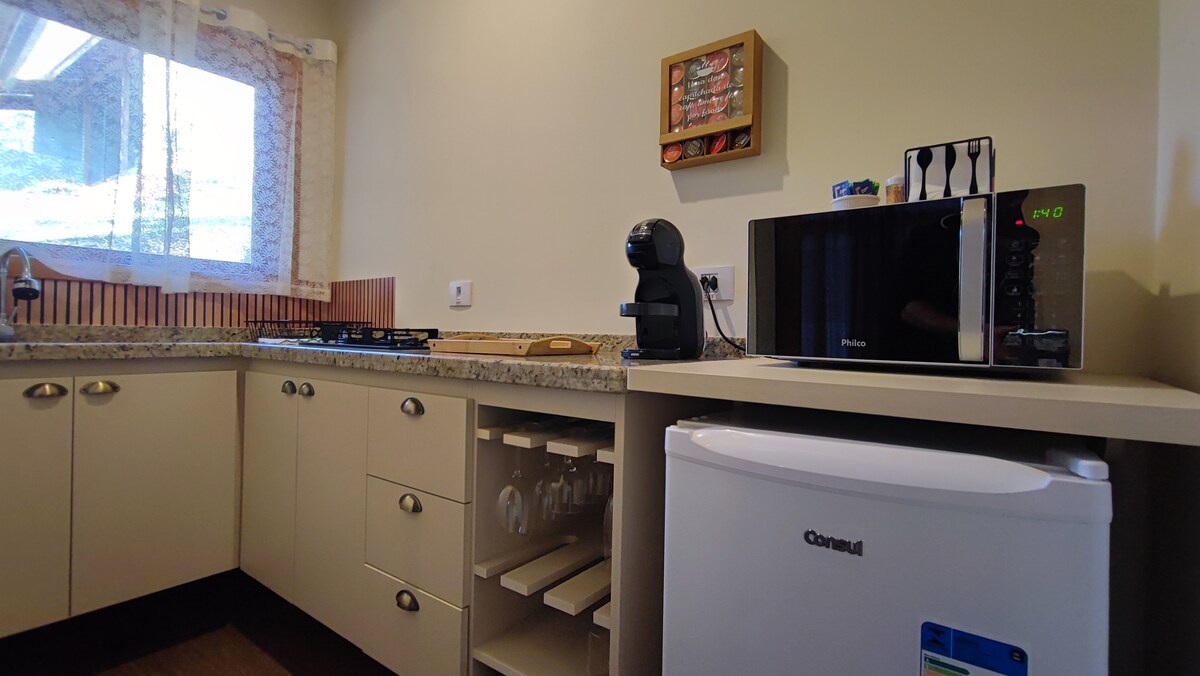Chalé Crystal very close to the center . Bathtub with chromotherapy In a place surrounded by nature , very cozy, quiet is very reserved Standard size double bed With bedding , pillow , covered and towels All kitchen utensils are provided: cutlery, sandwich maker, blender, coffee maker, and fondue pot. Air conditioning is available for cooling only; the heating function is not activated, as we have a fireplace for that purpose. We can provide a bathrobe upon prior request and payment of R$40.