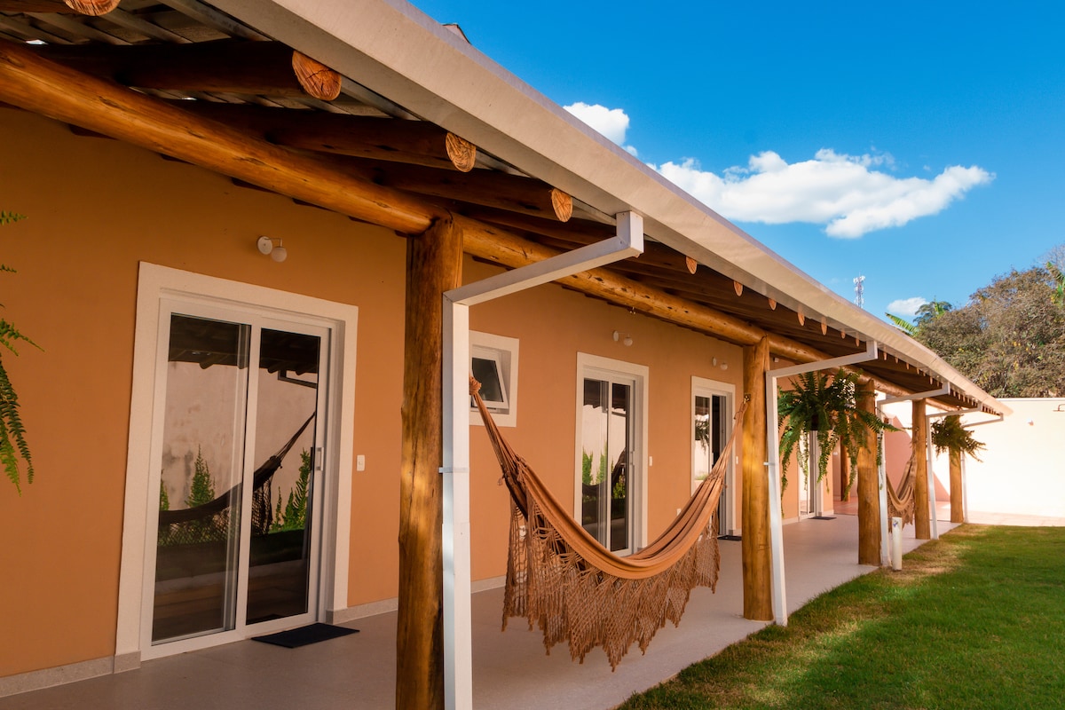 Forget your worries in this spacious and serene space. New, charming and cozy cottage. Well located, 2 km from the center, at the top of the hill, with a 360-degree view of Pico Agudo, Pedra do Baú and a beautiful sunset. Very quiet, peaceful and private place, with lots of nature around. Ample space around the chalet to enjoy. Great for spending unforgettable moments together.