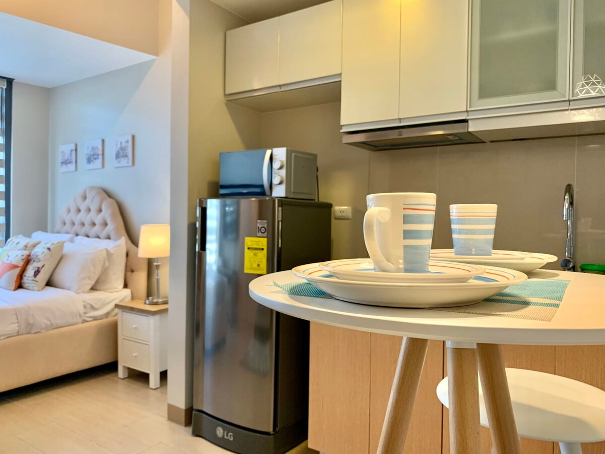 This studio unit in the heart of Eastwood, Quezon City is fully equipped and has a secured neighborhood where everything is just a few steps away. PLUS! A 100Mbps Fiber internet and a Netflix! — a perfect staycation for family, friends or loved ones!