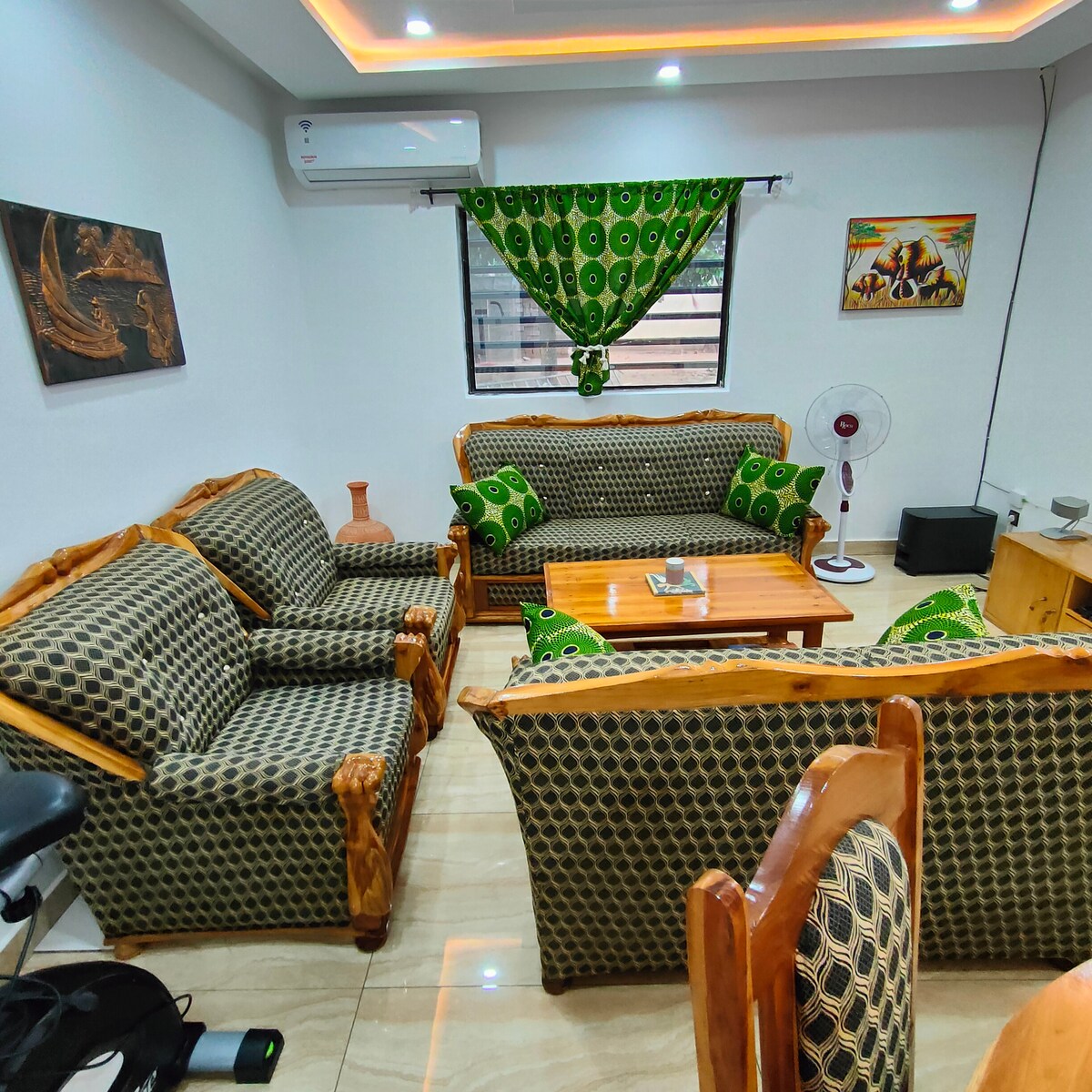 This is located in the heart of Dzoanti, a small village in kpando in the Volta region. The guest(s) get to live among the indigenous people and learn from them yet enjoying a comfortable stay. It’s a one (1) bedroom en-suite with spacious living room private entrance tv, home theater, king size bed, AC,