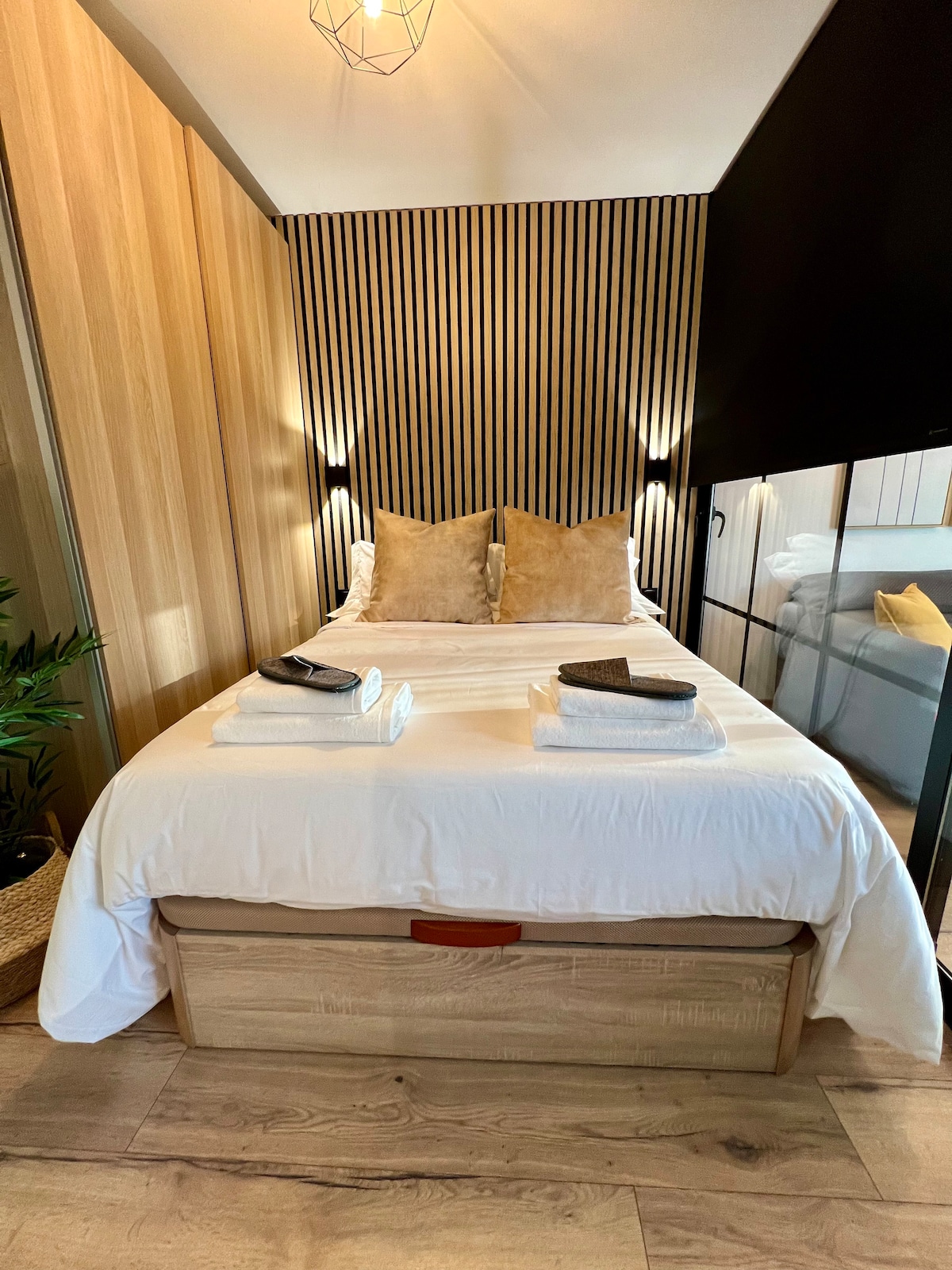 Charming studio, newly renovated and decorated in a modern style. It has everything you need to enjoy a pleasant stay very close to the main beach of SANXENXO. It has a great TERRACE that is very intimate and quiet. The apartment is 30 m2 and has an excellent location just a few meters from SILGAR, the supermarket and other services. All on foot. AIR CONDITIONING, GARAGE, sofa bed, WIFI, elevator (it is necessary to climb the last floor on foot).