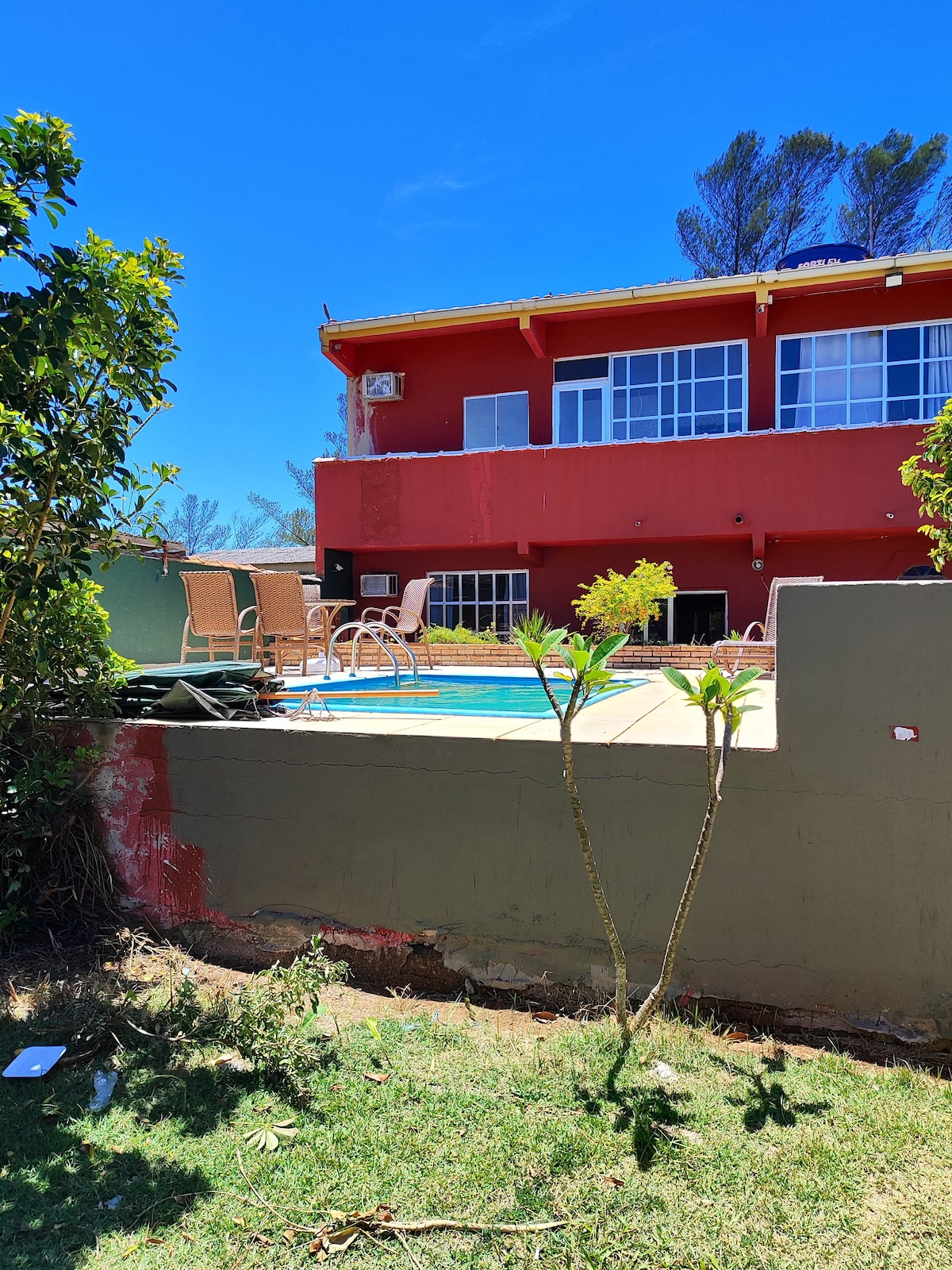 Lugar tranquilo, onde vc pode descansar ouvindo o canto dos pássaros. Espaço enorme para estacionamento gramado para crianças brincarem sem perigo