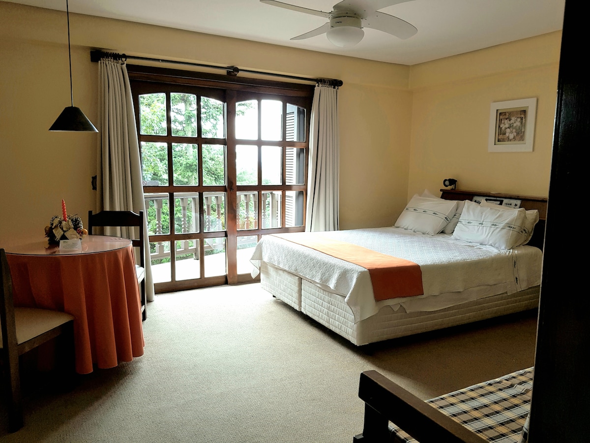 Viva momentos únicos na Serra Gaúcha! Hospede-se em um flat completo com a estrutura de um hotel e o conforto de casa. Lareira, piscina aquecida, sauna, brinquedoteca, academia e muito mais. Nosso flat está em local privilegiado e tranquilo, a apenas 700 metros da Catedral de Pedra, no coração de Canela. Fica em uma rua residencial arborizada, com fácil acesso a cafés, restaurantes e lojas. Ao lado área verde, contato com a natureza. Serviço de café da manhã (custo à parte) entregue no apto.