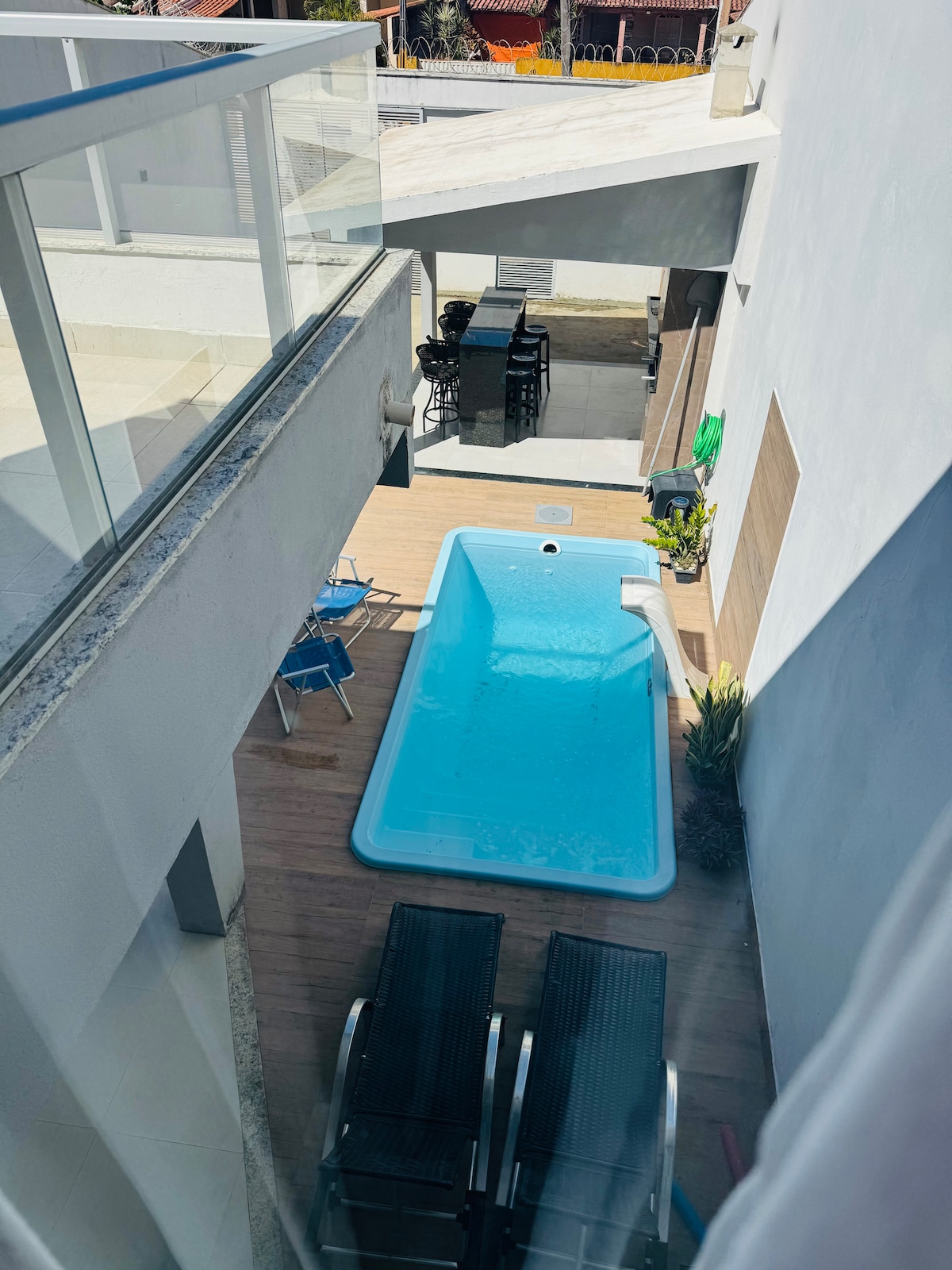 Relax in a charming, comfortable house close to Guriri Beach (only 200 m). Ideal for families and small groups looking for tranquility, practicality and excellent cost-benefit. The house is fully independent, with individual entrance, air-conditioned bedroom, living room with sofa bed, full kitchen and service area. The backyard leisure area has a swimming pool and barbecue area — which can be shared with the house next door if it is occupied, just like in hotels and inns.