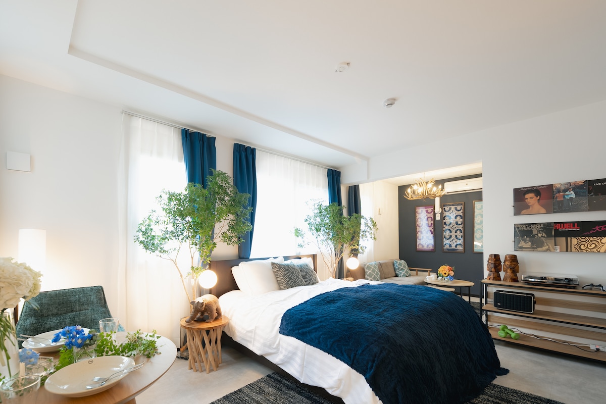 2025年7月にOPEN!サウナ付き5階建て新築ホテルのワンフロアを貸切でお使いいただけます。この部屋は2階にあり広さは約95平米です。2つの寝室には合計5台のベッドを設置しています。2つの寝室にはスモールシングルベッド(83cm×195cm)を3台とダブルベッド(140cm×195cm)を2台設置しています。宿泊人数が5名を超える場合はシングルマットレスと布団のセットを最大3つ用意できます。 【最寄り駅】 ・札幌市電「西線9条」降り場から徒歩5分(350m) ・地下鉄南北線「中島公園駅」2番出口から徒歩11分(700m) ・地下鉄南北線「すすきの駅」5番出口から徒歩17分(1.3km) 【駐車場】 先着1組限定で駐車場が利用可能です(予約制)。縦列駐車で最大2台駐車できます。料金は1泊につき3,300円です。4泊目からは1泊1,100円です。予約確定後に追加料金をいただきます。 【新千歳空港からの移動方法】 JR新千歳空港駅から乗車しJR札幌駅で下車。JR札幌駅から駅構内を移動し地下鉄南北線の真駒内駅行きに乗車し中島公園駅で下車。中島公園駅2番出口から徒歩約11分で到着します