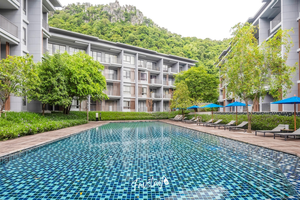 Experience an exquisite getaway in Khao Yai with a design that especially enhances the degree of total relaxation and an atmosphere surrounded by mountains and natural forests. Unwind while admiring Khao Yai’s greeneries and swim in the large pool at the center of the property. This condo's staff do not support short-term rentals. Hence, please do not go to the front desk or juristic office at the building. If there are any issues or questions, please contact or text us directly.