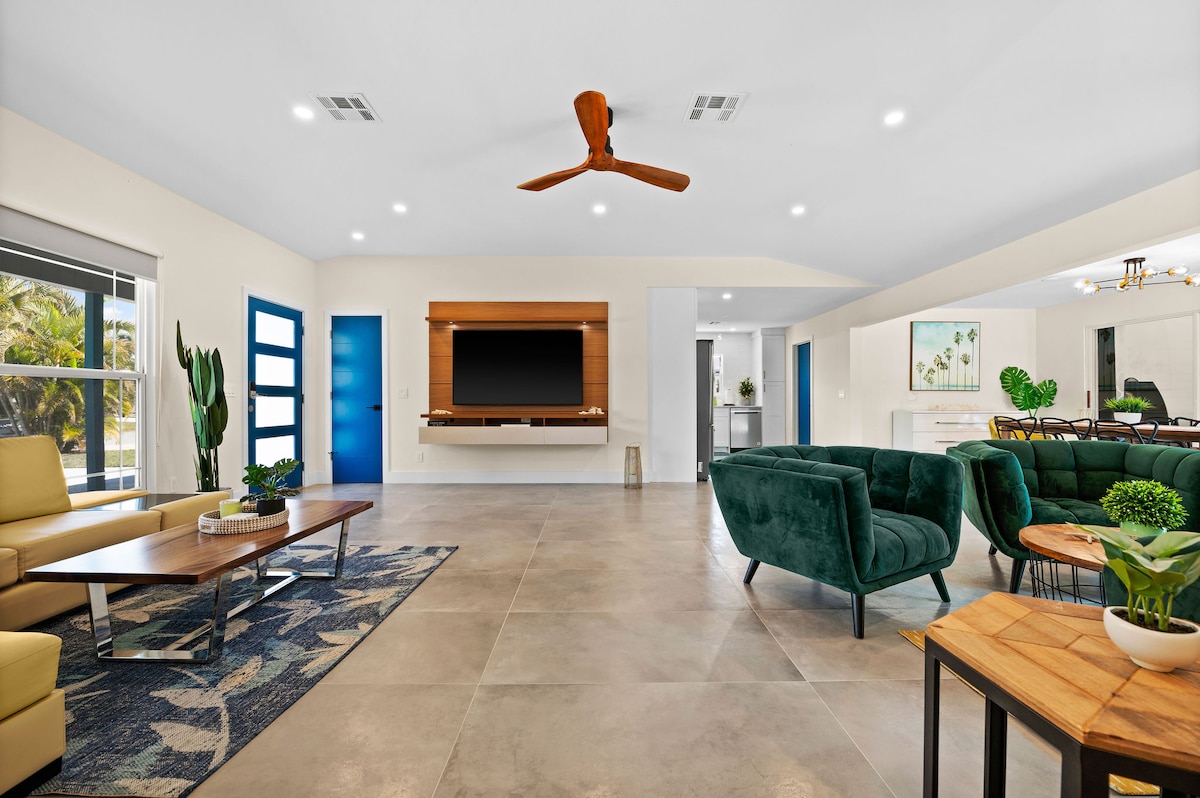 Spacious 3BR retreat in Port Charlotte perfect for family getaways and long stays 🌴 Minutes from beaches, dining, and shopping. Sleeps up to 8 with 2 king bedrooms opening directly to the pool, plus a queen bed and sleeper sofa. Enjoy a private pool, hot tub, screened lanai, fire pit, and private dock 🏖️ Fully equipped kitchen, multiple living areas, smart TVs, fitness gear, and beach essentials. Best part? You don’t even need to leave to relax or have fun ☀️🏡