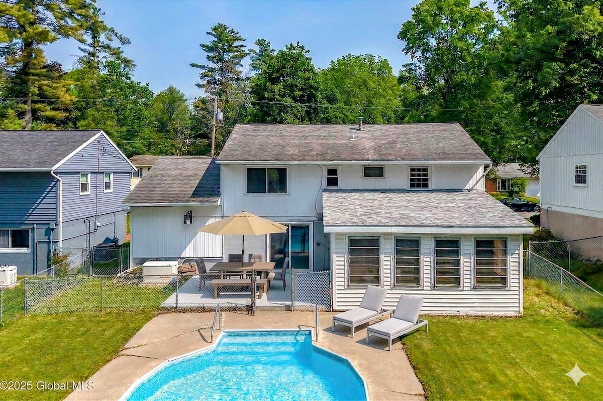 Relax and unwind in this spacious Ballston Lake retreat featuring a fully fenced backyard with a private in-ground pool, fire pit, and kids’ playground—perfect for families or small groups. Upstairs you’ll find 2 Queen beds and 1 King bed, comfortably sleeping 6. Enjoy multiple living areas, a finished basement lounge, and central AC for year-round comfort. Just 3 minutes to I-87, 10 minutes to GlobalFoundries, and 20 minutes to Saratoga Springs attractions.