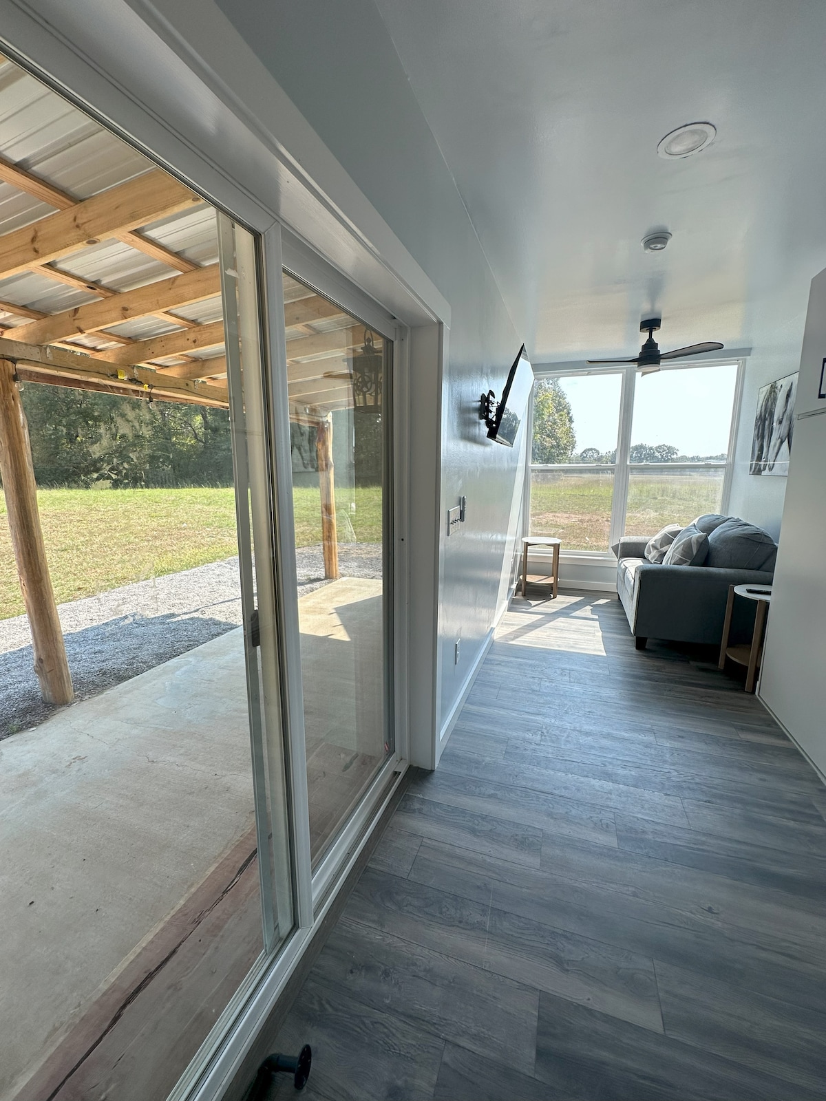 It is located right off of Hwy 35, only .9 miles from Sardis Lower Lake and 1 mile from Sardis Lake. It is only 19 miles from Vaught-Hemingway Stadium. 30’x20’ covered parking with motion sensors lights for multiple vehicles, truck and boat (has a cord reel). Screened in porch with table and chairs *contact us for early check in inquiries