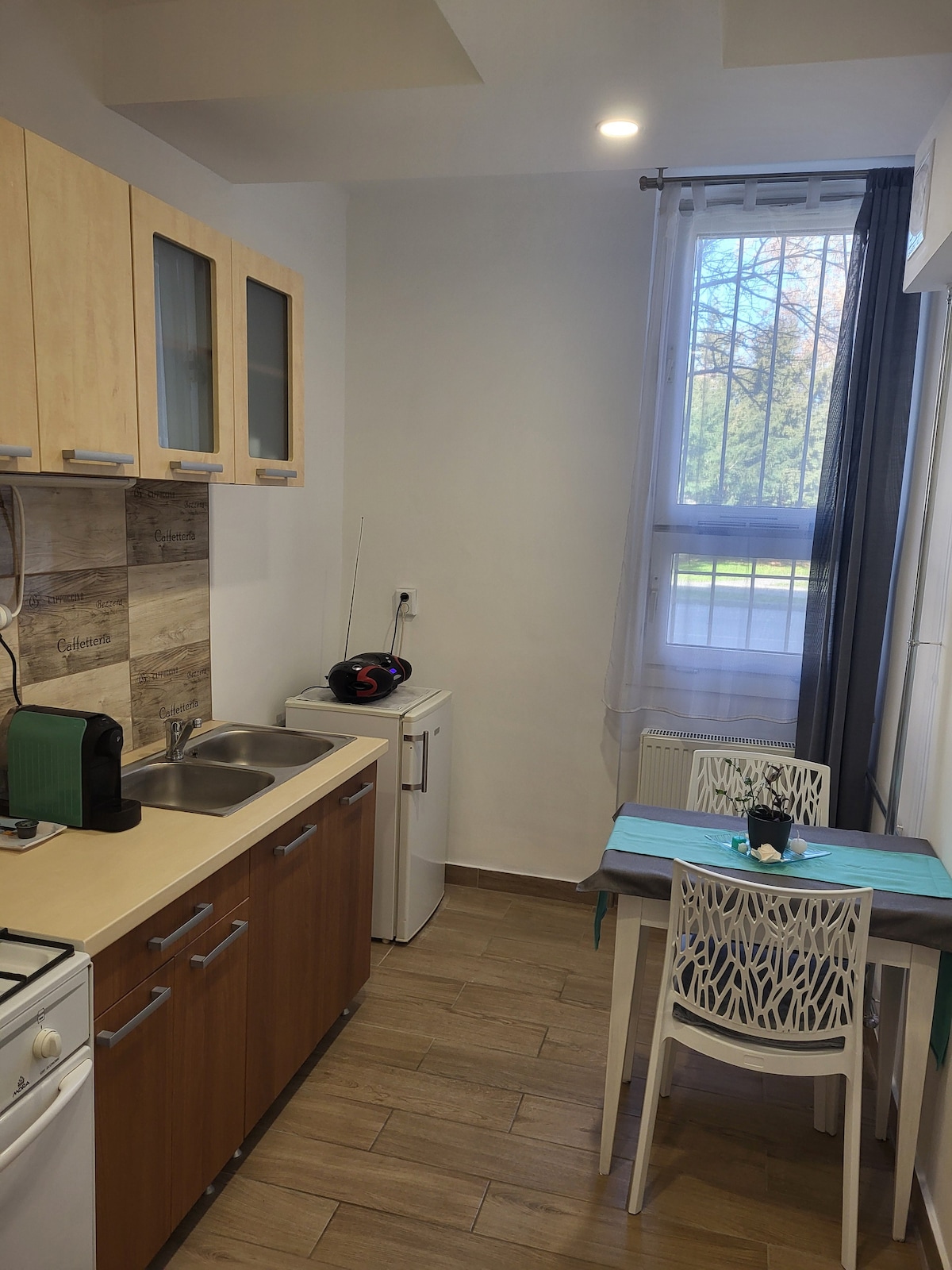 ***Peaceful, cozy super studio where you'll find everything you need for a peaceful rest! The apartment is on the fourth floor of a newly built, beautiful, modern condominium. The one-room, 33 m2+ 9 m2 balcony home is equipped with everything you need for a relaxing rest! Free, barrier-free, surface parking is included with the apartment, which you can use free of charge. There is a private medical office and pharmacy on the ground floor of the building, and a landscaped courtyard is also available. Registration number: MA25111352