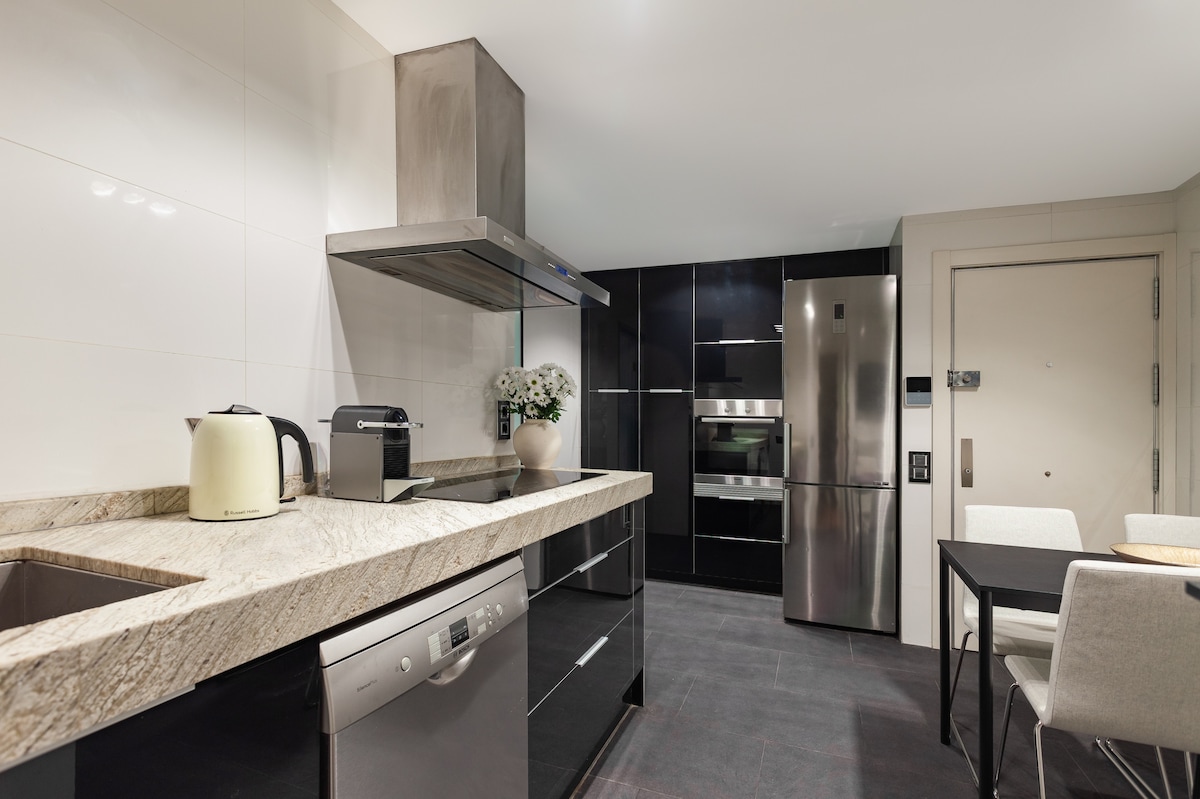 Apartment with two bedrooms and two bathrooms located in the central area of the Eixample, perfectly adapted for a comfortable stay for 4 people. Each room has a cozy double bed, which provides a quiet retreat to relax. Benefit from the community of free Wi-Fi, TV, a wide selection of Moderna appliances, garden and swimming pool.