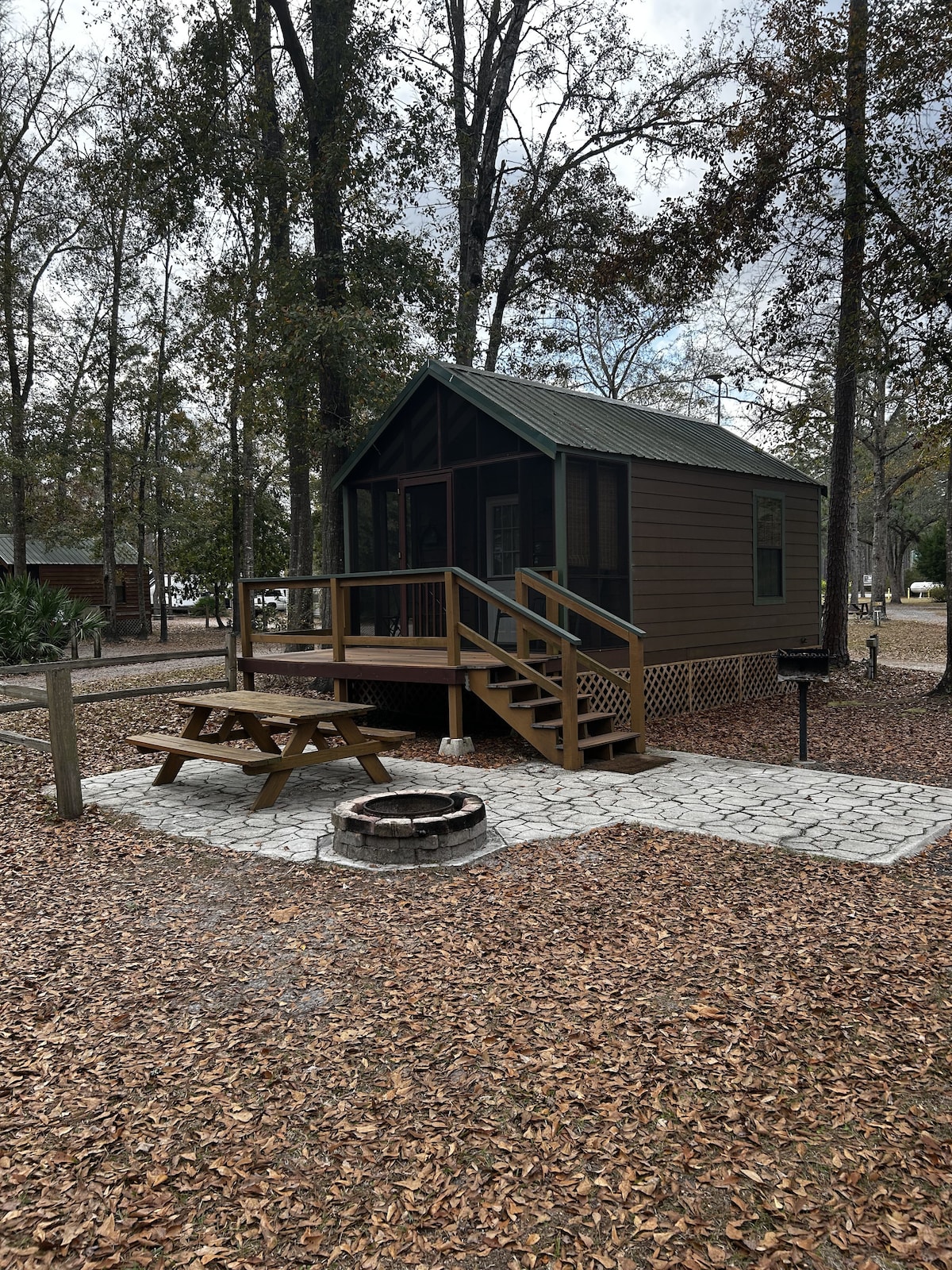 Welcome home! The private cabin is located on the desirable east side of beautiful Jacksonville Florida at the end of a quiet street surrounded by woods. You’ll have everything you need here. A true full kitchen, huge California King bed, comfortable living area, spacious deck, and even a washer and dryer in the unit.