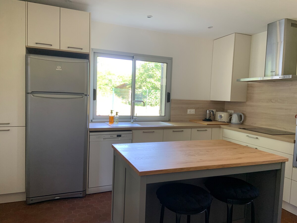 Welcome to our fully renovated house in the very center of the village of La Brède, famous for Montesquieu. We are located in the heart of the vineyard area called « graves » just next to « Pessac-Léognan ». The local shops are walking distance and offer lot of choice (3 bakeries, 2 butchers, a grocer…) so you won’t have to go far to fill the fridge ! The kitchen/living room opens onto a sunny terrace as well as a little garden, perfect for sipping wine while watching the kids play !
