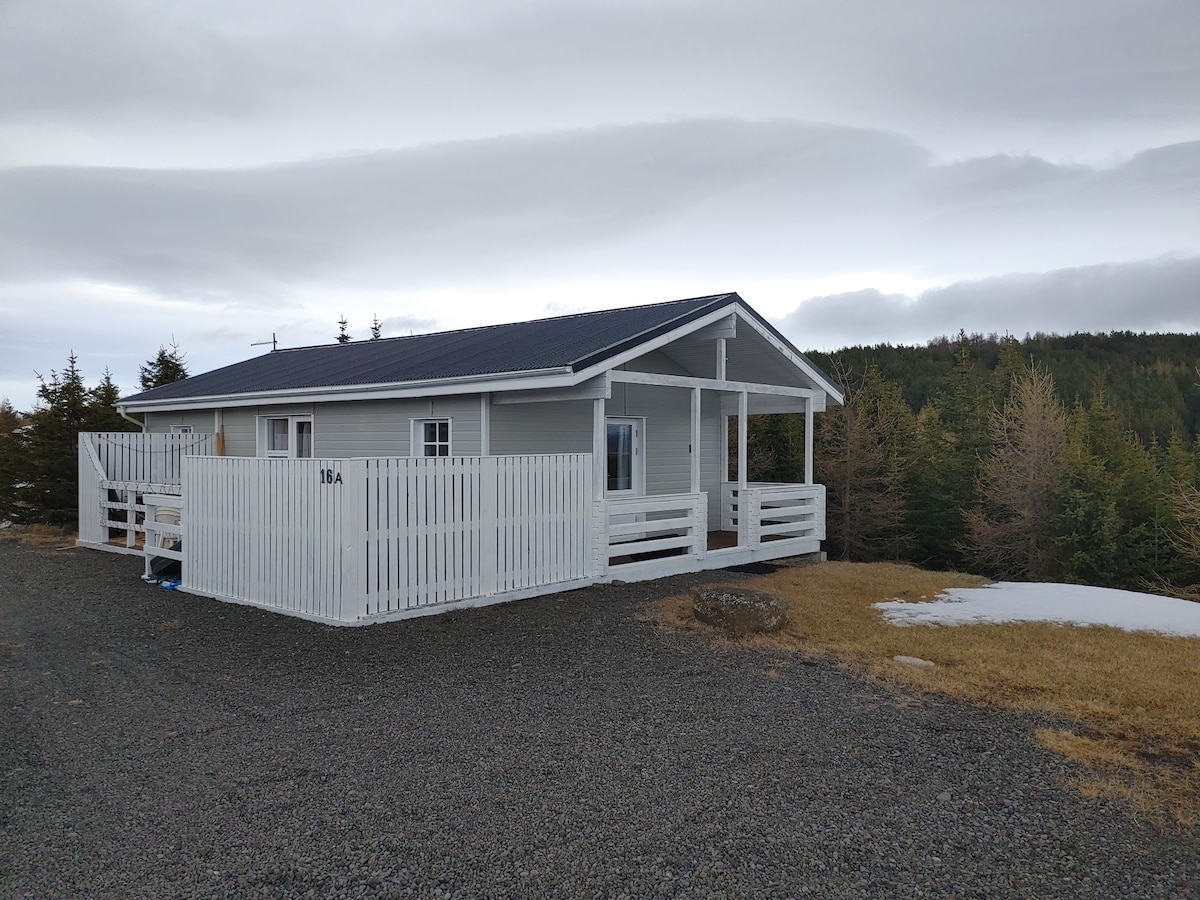 Welcome to Langaborg Guesthouse, a recently built hidden gem with a unique view over Sauðárkrókur (7km away). This tranquil retreat features one bed and a sofa bed, ensuring a cozy stay. The fully equipped kitchen invites you to savor the freedom of self-cooking. Immerse yourself in comfort, privacy, and the breathtaking beauty of the surrounding nature. Langaborg Guesthouse is the perfect getaway for those seeking relaxation, comfort and enjoyment.