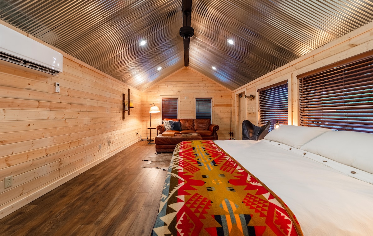 If you are looking for peace and quiet, you have found it!! The Weekender is perfect for couples that are looking for some R&R. It is located approximately 4 miles from McAlester. This cabin has everything you need to get away! Relax on the deck while cooking a steak on the grill, sit in the hot tub or around the outdoor firepit just a few steps away. The inside is an open floor plan with kitchenette, King size bed and cozy living area! We have multiple cabins in case you want to bring friends.