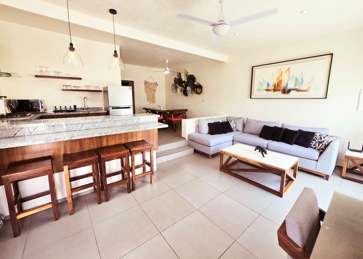 Casa Conchita Guest house is a hidden gem in the heart of bustling Sayulita Mexico- A downtown oasis. The Penthouse is a beautiful newly renovated 2 bedroom vacation loft perfect for groups or families. Featuring a new modern fully equipped kitchen with dining area, open and spacious double bathroom, and comfortable living/TV room. Enjoy free Netflix, WiFi, & AC in every room. Our property features an organic coffee bar on the first story by day, and an authentic Mexican restaurant by night.