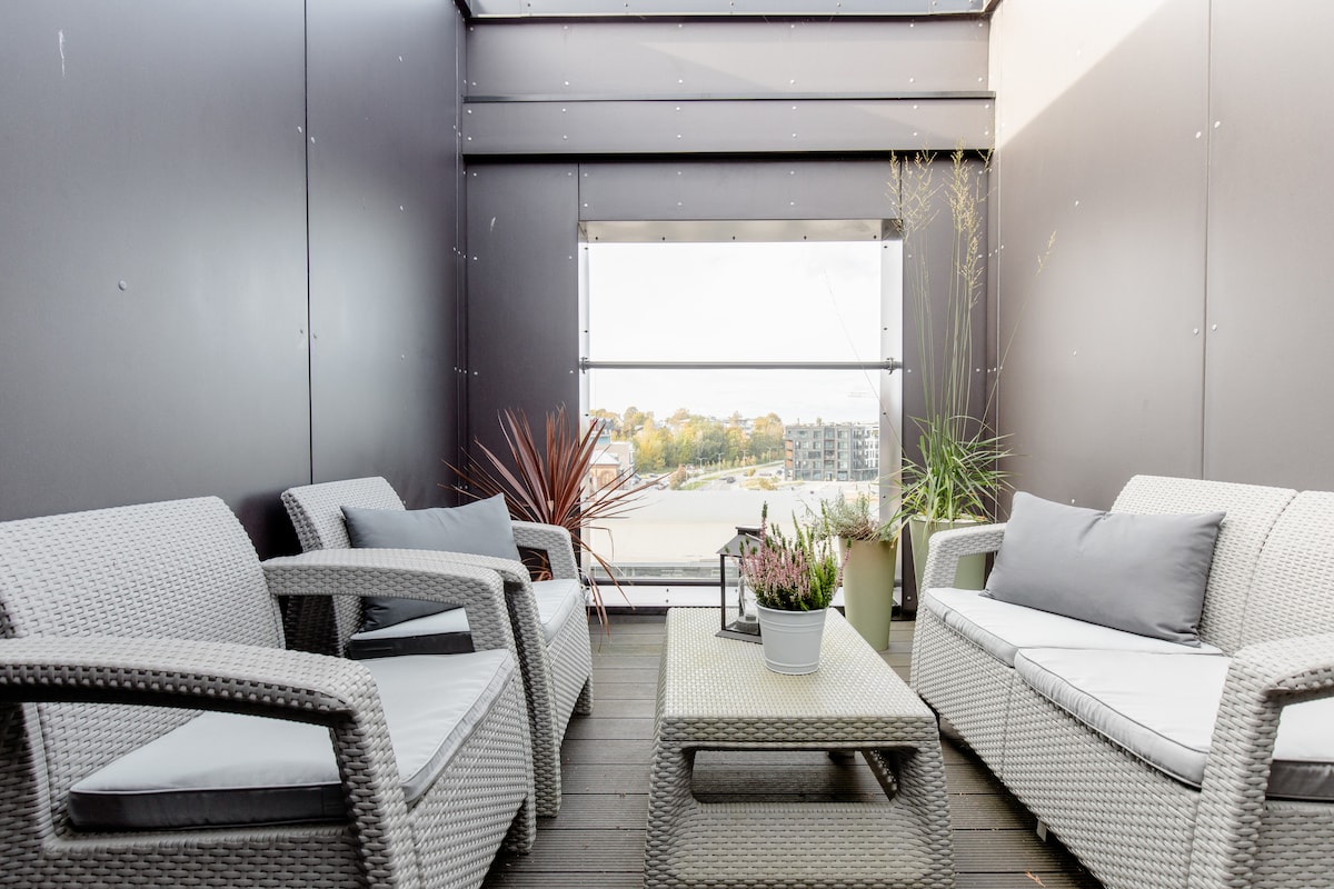 A cosy loft apartment, 40 m2, in one of the best parts of the citycenter, right in the hearth of Oslo - with the very best seawiew and sunsets right from your sofa. Short walking distanse to the Oslo sentral station, Royal Castle, Opera and harbour- area. Here you find the very best restaurants, shopping area, clubs&bars. The flat is in the seventh floor , with french balcony. Wonderful sunsets. Roof terrasse with 360 degrees view . Elevator in the building. Coffeshop in the first floor..