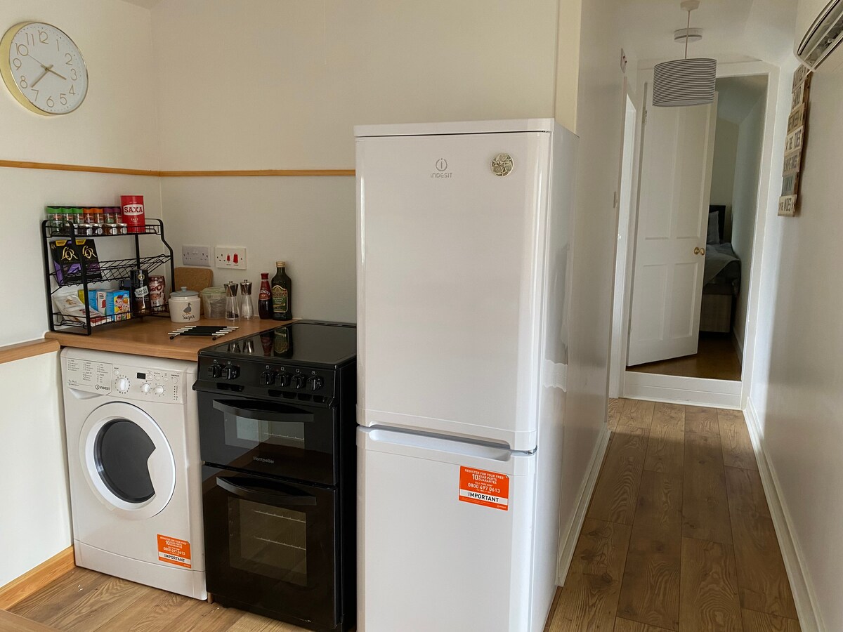Newly renovated, fully equipped ground floor self catering flat located in the heart of Kirkwall, within a few minutes walk of all amenities including the harbour, restaurants, shops & St Magnus Cathedral. The property comprises of 2 bedrooms, one king size with an ensuite bathroom & one double bedroom. It has an open plan Kitchen/dining/ living area & a bathroom with a shower cubicle. Guests will have the sole use of the flat & all appliances within it as well as their own outside space.