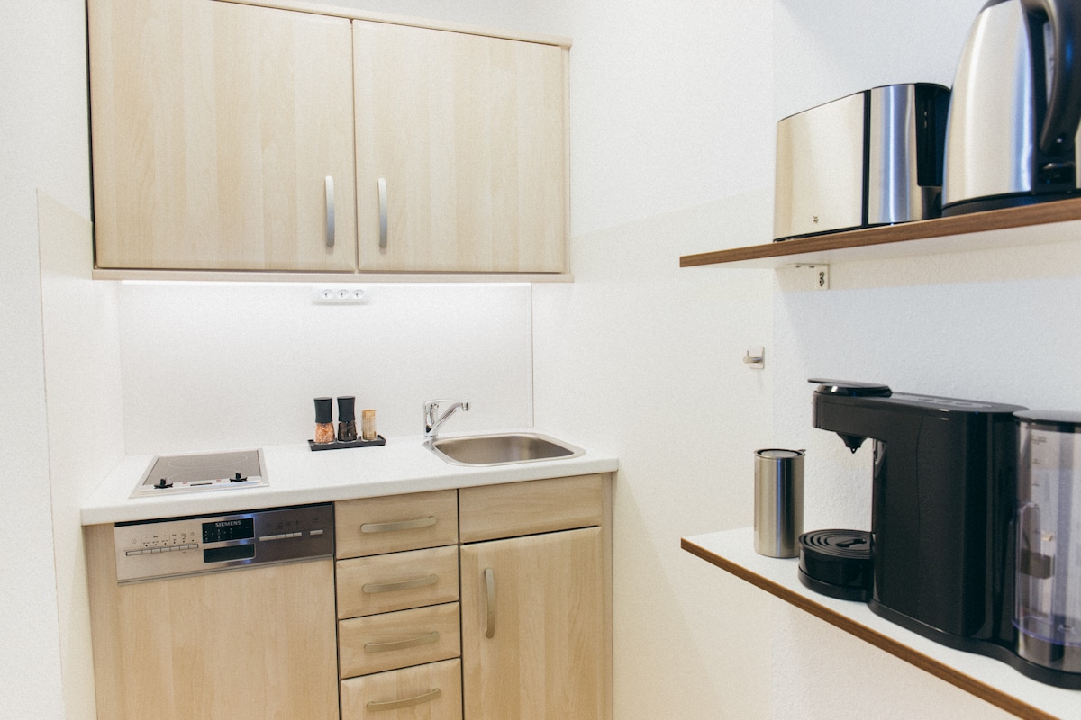 Heimatel Studio 6 offers about 40 sqm of living space and can accommodate up to 4 people (double bed & 2x 90x200 sofa beds). You have beautiful views to the southwest, where the sun sets in the evening. The room is newly renovated, the bathroom is equipped with a bathtub and in the small kitchen you will not miss anything. Use of the pool and sauna are included in the price.