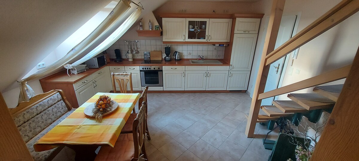 A fantastic apartment in a historic timber-framed house, ecologically renovated and stylishly furnished awaits you. Up to 6 people can spend a great vacation in our house in the UNESCO monument site for the surrounding architecture. Hiking and cycling destinations, an outdoor swimming pool, the UNESCO World Heritage Site of the Moravian Brethren and the star manufactory are very close.