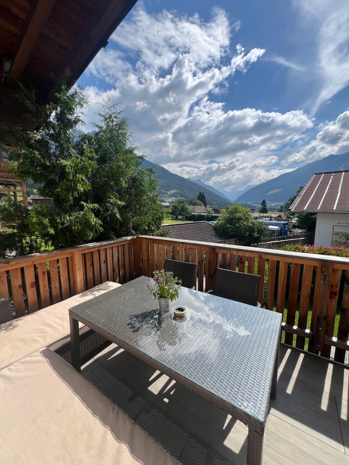 Situated on the outskirts of a Tyrolian mountain village this place offers you a wonderful-broad view. The apartment, lovingly combining tradition and modernity will let you calm down and recharge your batteries instantly. A closeby cable car enables you to all kinds of mountain sports in summer and winter. Yet- even those, who just "stay and relax" will feel at home. WIFI, TV, BT-boxes, parking space are available free of charge; for the Sauna we take a small feey. Kitchen is well equipped .