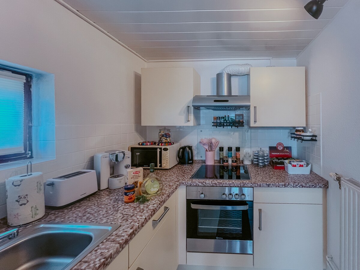 Our 2-room feel-good apartment with separate entrance is ideal for 2 guests with children: vacationers, business travelers, course participants or just to relax... Approximately 35 sqm in the basement of our house are lovingly modern and cozily styled with floor-to-ceiling windows to the terrace in the countryside. Free Wi-Fi! Please note: No smoking in the apartment!!! This also applies to e-cigarettes (vaping), etc. With S4 to Hanover main station: only 26 min./to Messebahnhof- Laatzen: only 35 min.