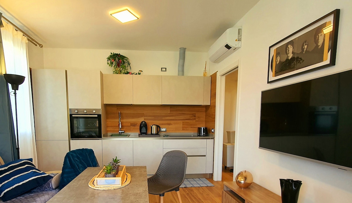 Cozy flat with spacious living room with sofa bed for two. Fully equipped kitchen, double bedroom, bathroom with tub and washing machine. Air-conditioning, tv and wi-fi. Private balcony and car parking. Third floor. The apartment is located in a peaceful residential area, close to Venice, Padua and Treviso, easily reachable by bus and/or train. The area is famous for its art, culture and excellent restaurants! Suitable for couples, families and for business people. Highway 1.5 Km.