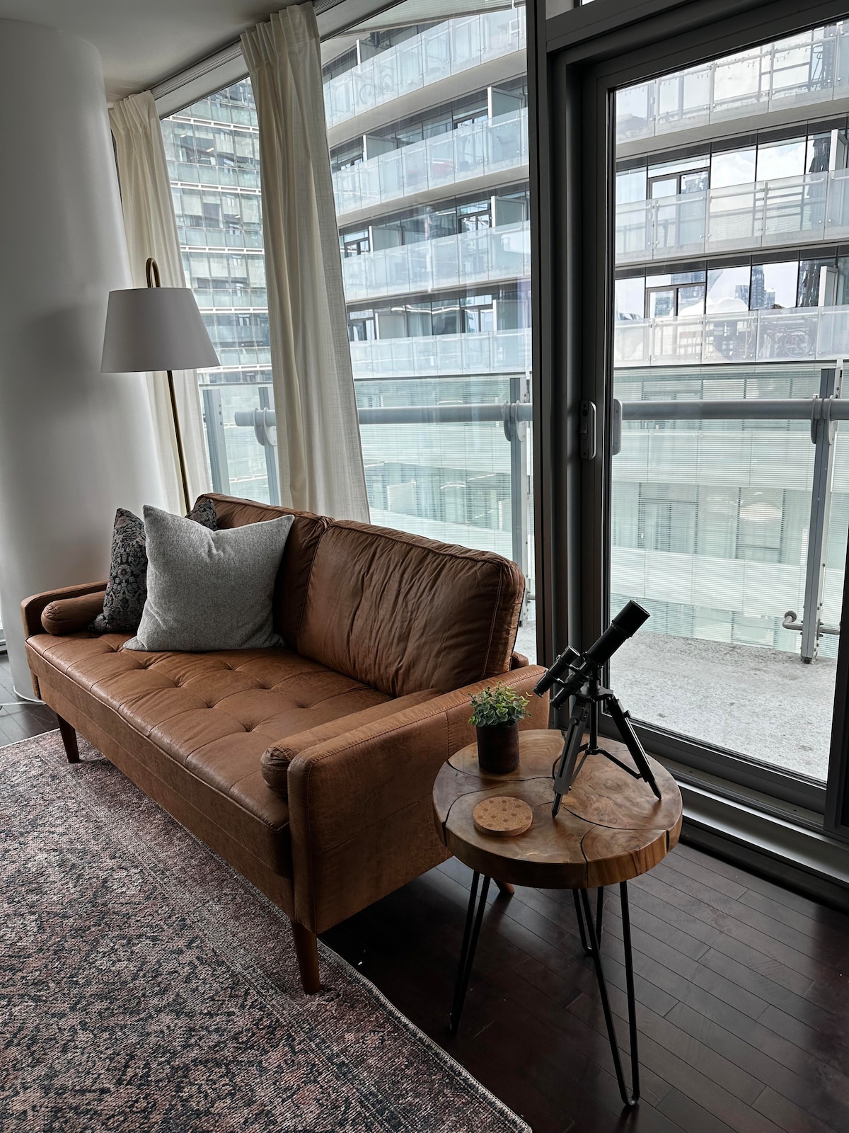 Marvel at the glorious Toronto urban vibes from your room with floor to ceiling panoramic windows. This 1 bedroom condo is professionally designed with modern finishes. You will absolutely love the space we have prepared for you. Relax, unwin,d and enjoy the city views on the private balcony with outdoor furniture. Professionally cleaned after each guest checkout. 100% private and unshared, entire modern condominium unit. Safe, secure, and easy self-check-in procedures with 24/7 security.