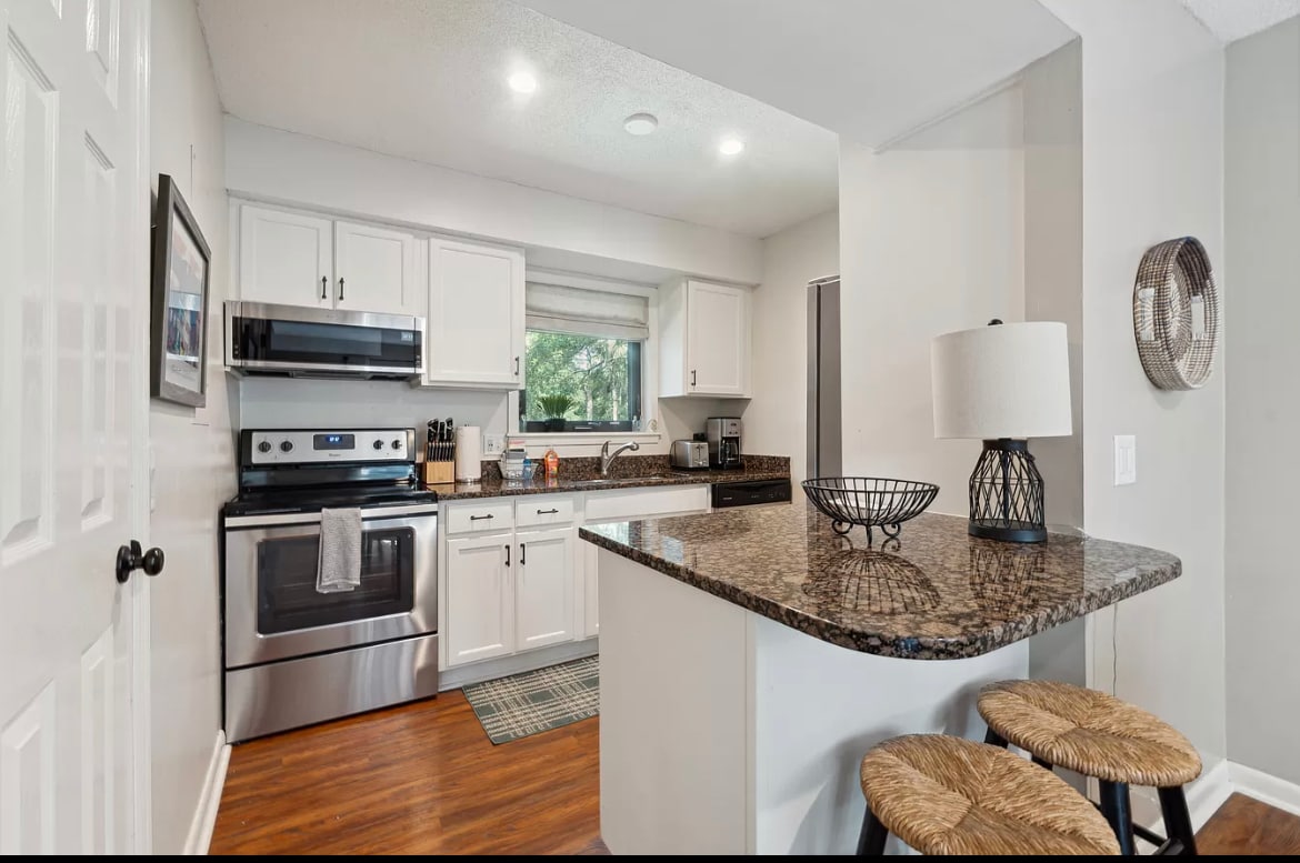 Welcome to Seabrook Island! This fully renovated townhouse is located on the golf course and Only 1 mile from uncrowded White Sand beach. And just about 1.5 mile is the new beach club pool, beach side lounge, outdoor door restaurant and bar, also golf and the club house. plenty of parking there or just bike or walk there. Also, only 10 minutes to Freshfields Village. I have stocked just about anything you need for your stay, as well as coffee, beach towels, chairs, coolers.
