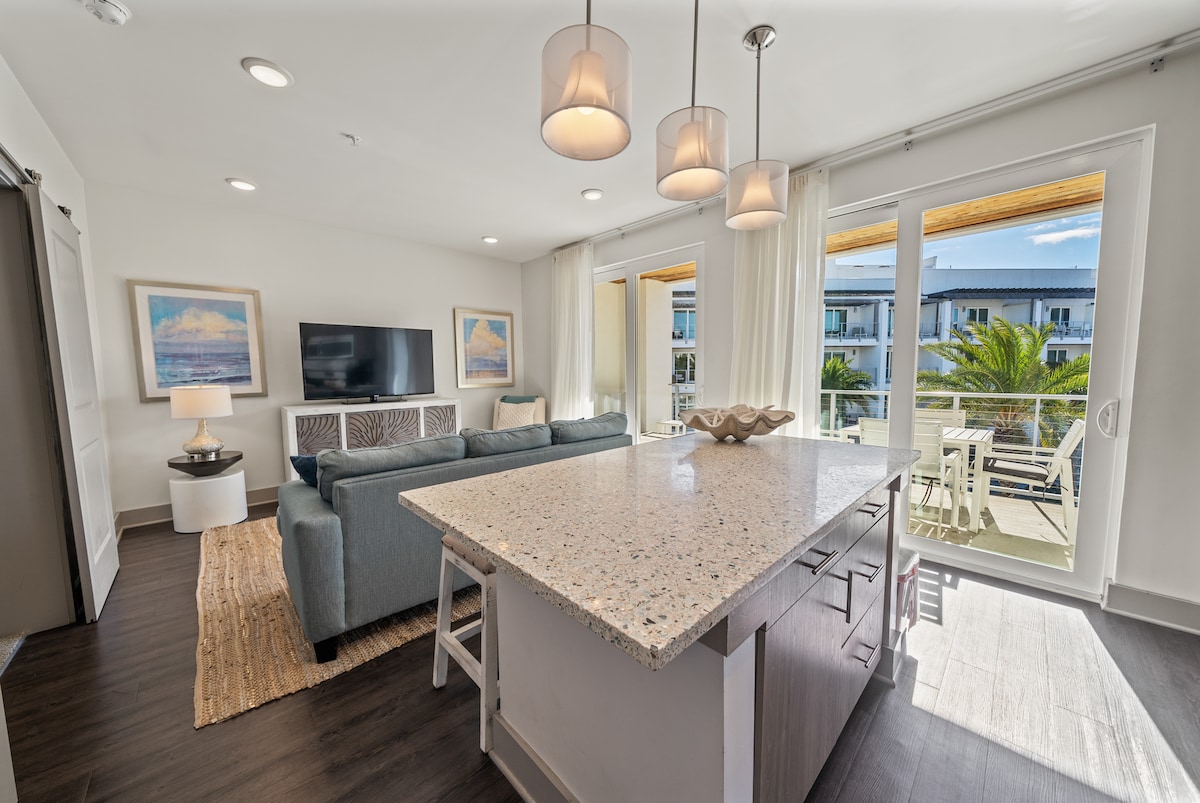 5 min walk to beach! **PLEASE READ ENTIRE LISTING B4 BOOKING. Paradise awaits at this beautiful 2 bedrm 2 bath top floor condo, situated at the highly coveted and recently built luxury resort The Pointe, located exactly next door to Rosemary Beach. This impressive and ideally located boutique resort boasts a lovely tropical pool, hot tub with outdoor fireplace, on-site café Big Bad Breakfast, poolside lounge, Rooftop Lounge with a spectacular view, & a well equipped gym overlooking the pool.