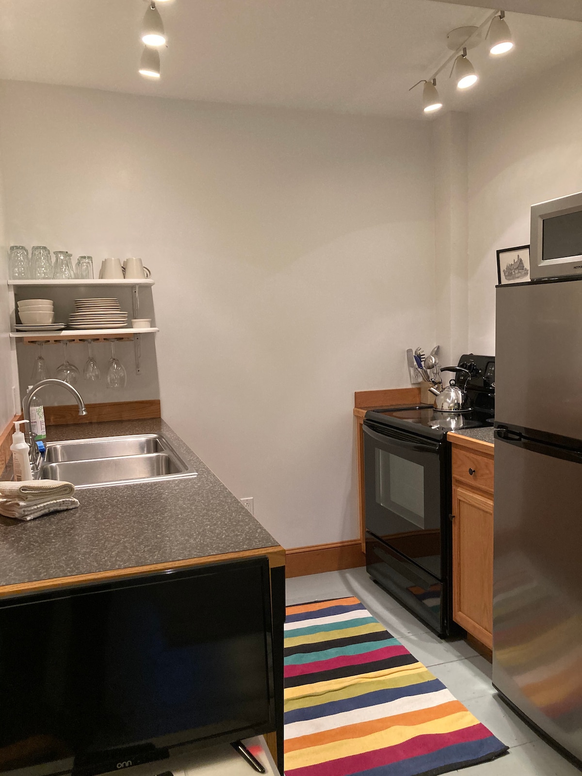 Enjoy a bright, sun-filled, stylish experience at this centrally-located 2nd floor apartment. This open concept, king bed studio apartment is perfect for a couple or a solo experience. (The bedroom space is defined but does not have a door.) Spacious and cozy with a well-appointed kitchen and washer/dryer. Lots of restaurants & shops nearby with a superb coffee bar downstairs. Belfast waterfront, Saturday morning United Farmers Market, and the fabulous Harborwalk just 2 blocks away.